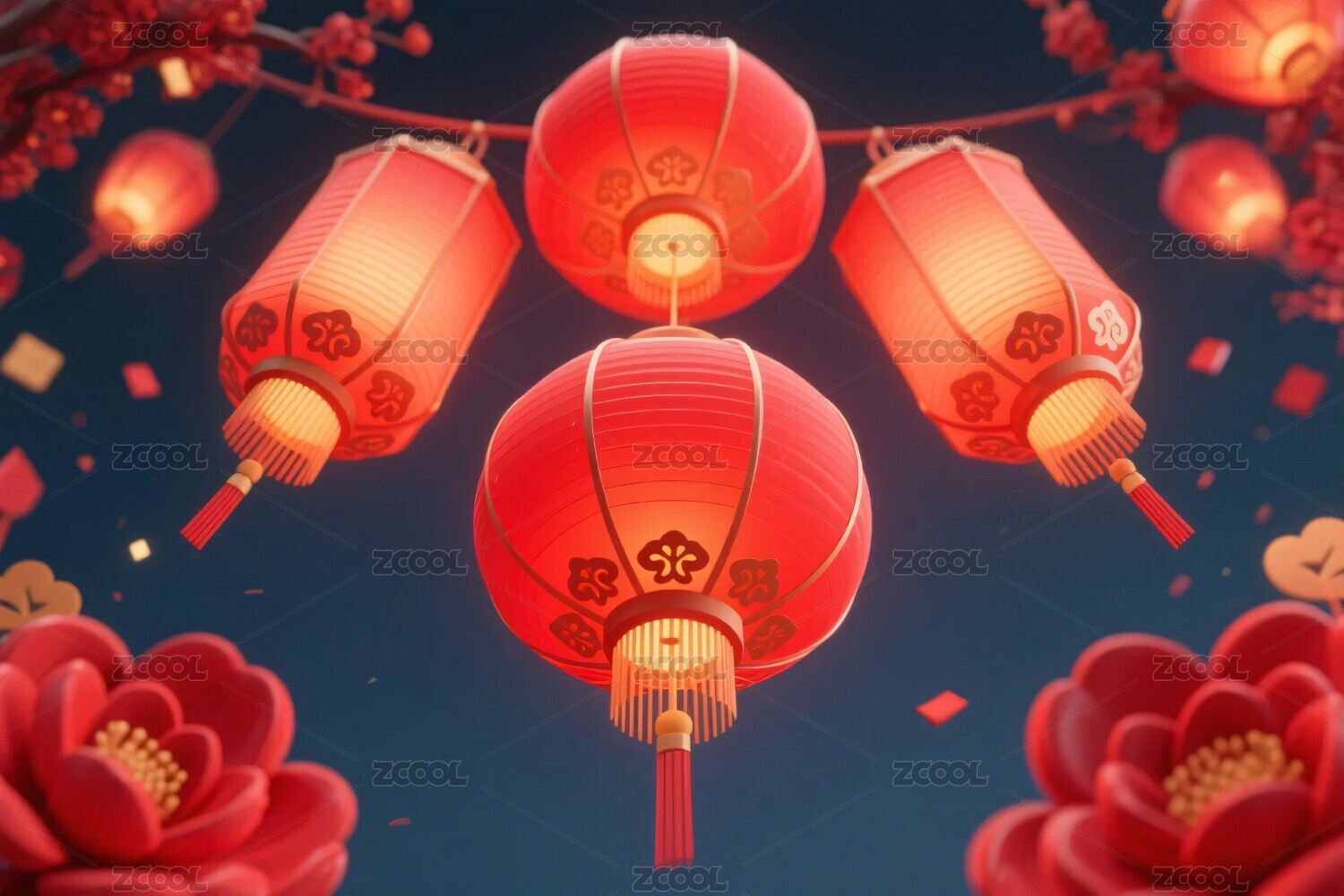 喜庆灯笼花卉装饰