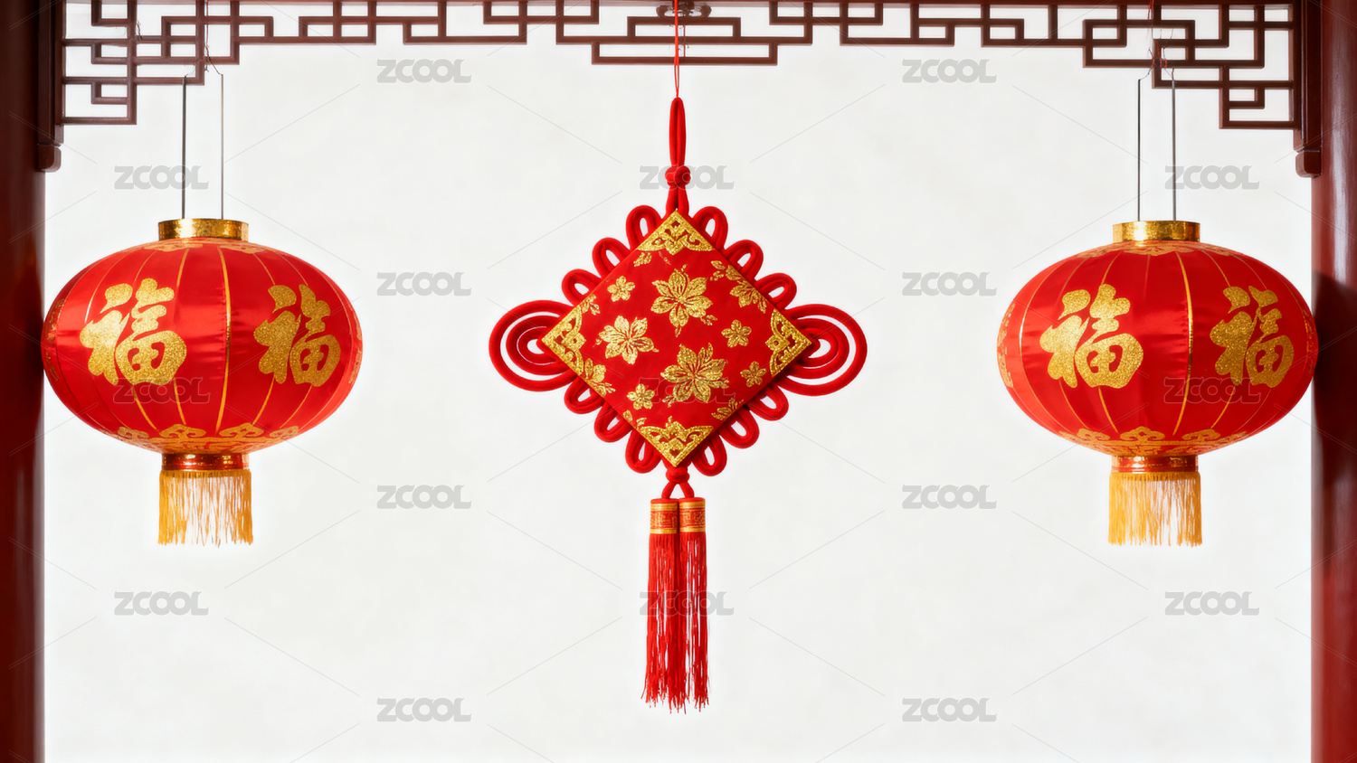 春节红色灯笼与中国结