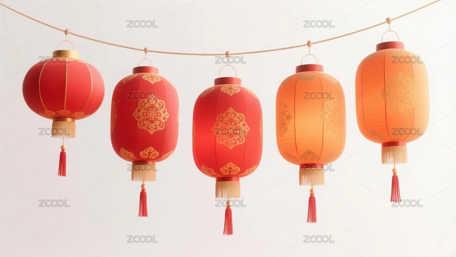 红色灯笼与金色祥云装饰