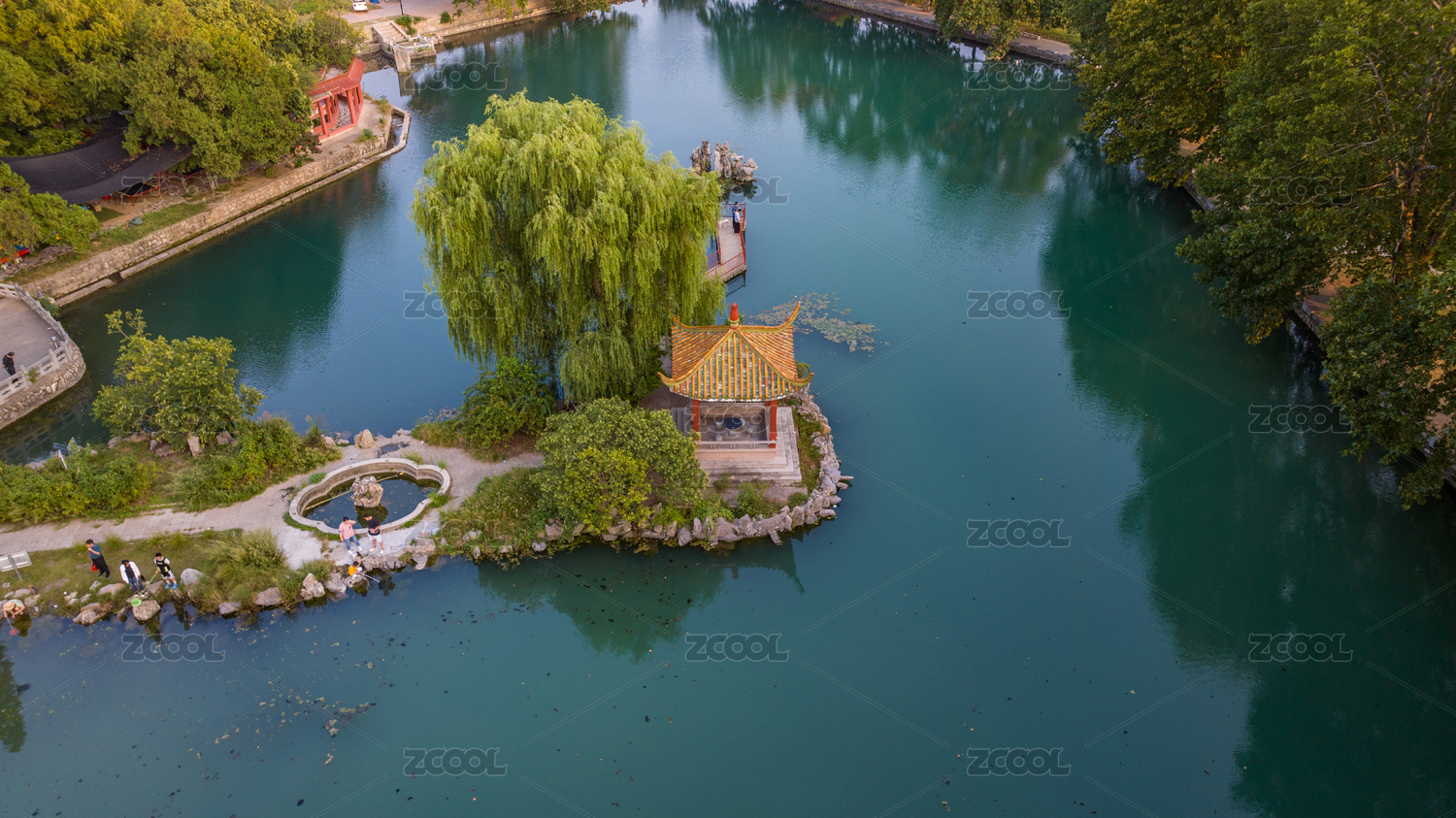 山东济南趵突泉秋冬黄色银杏航拍风景