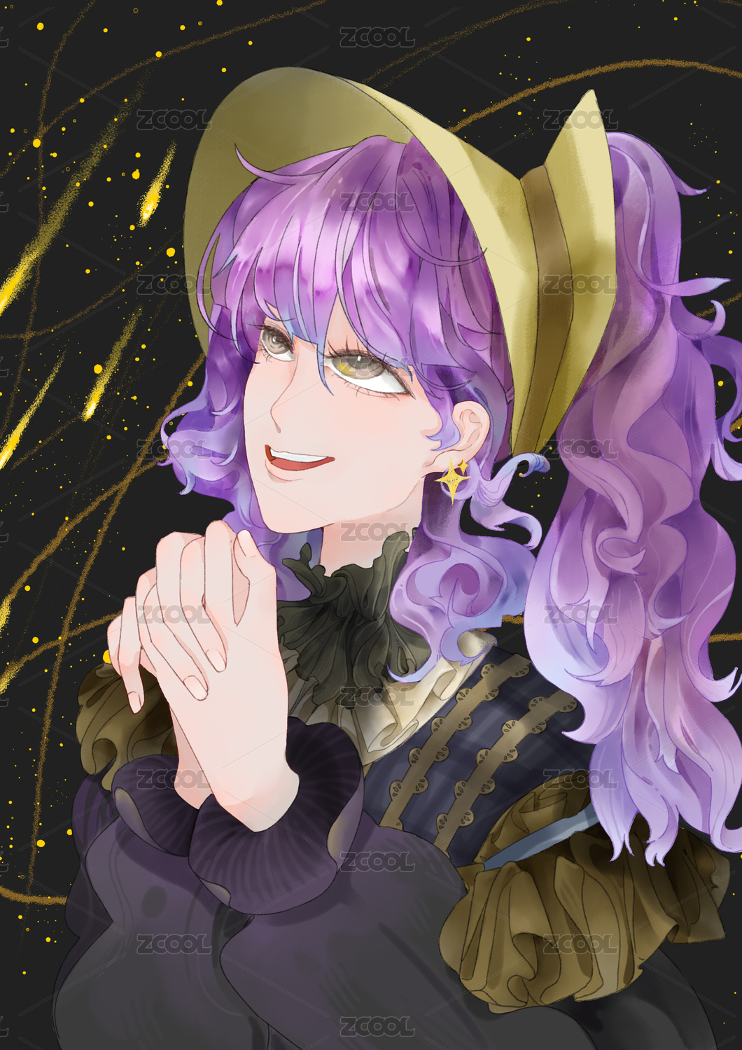 蓝帽紫发少女