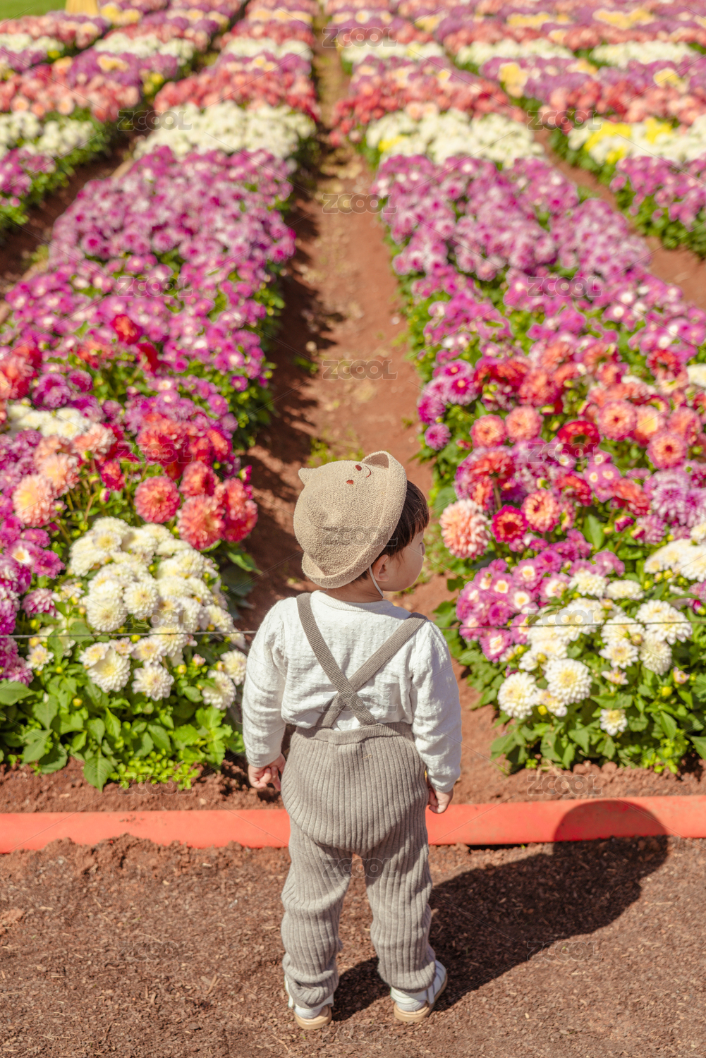 花海,花展,观赏,男孩,幼儿,游客,旅行者,旅游目的地,休闲度假,戴草帽