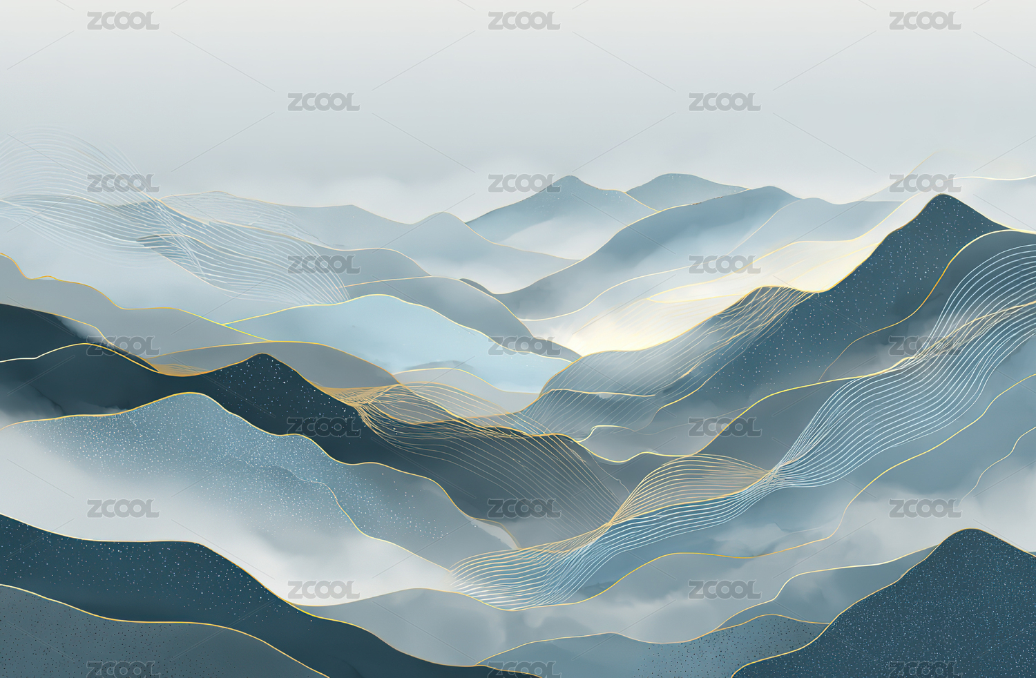 记忆浅色线条山脉油画装饰画插画背景