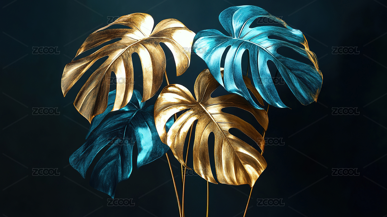 数码金箔叶子植物装饰抽象图形海报网页背景