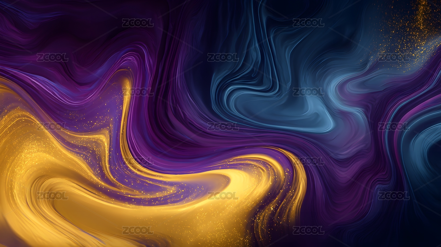 深蓝与紫金的抽象流动艺术