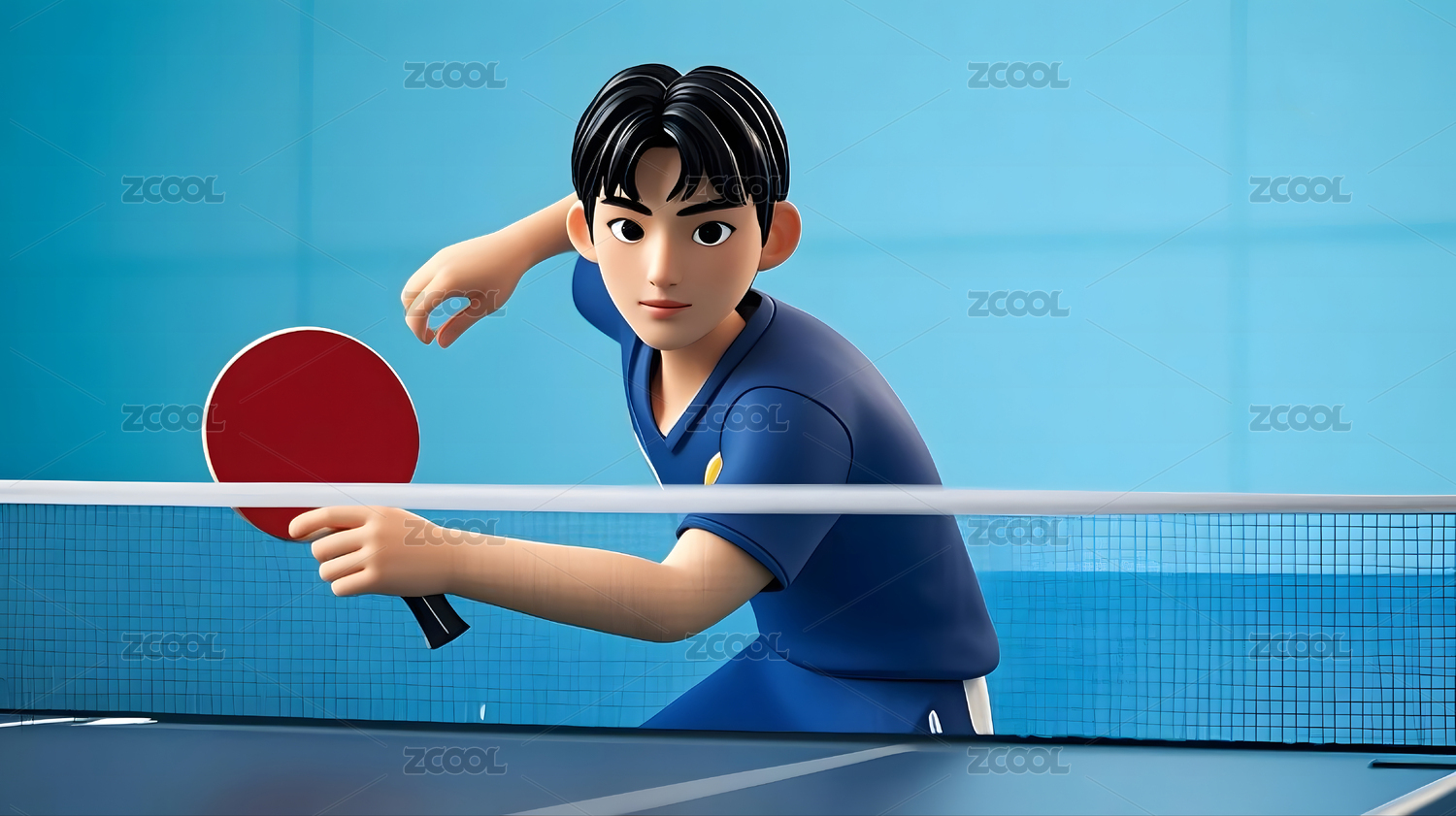 3D蓝色背景打乒乓球的男运动员