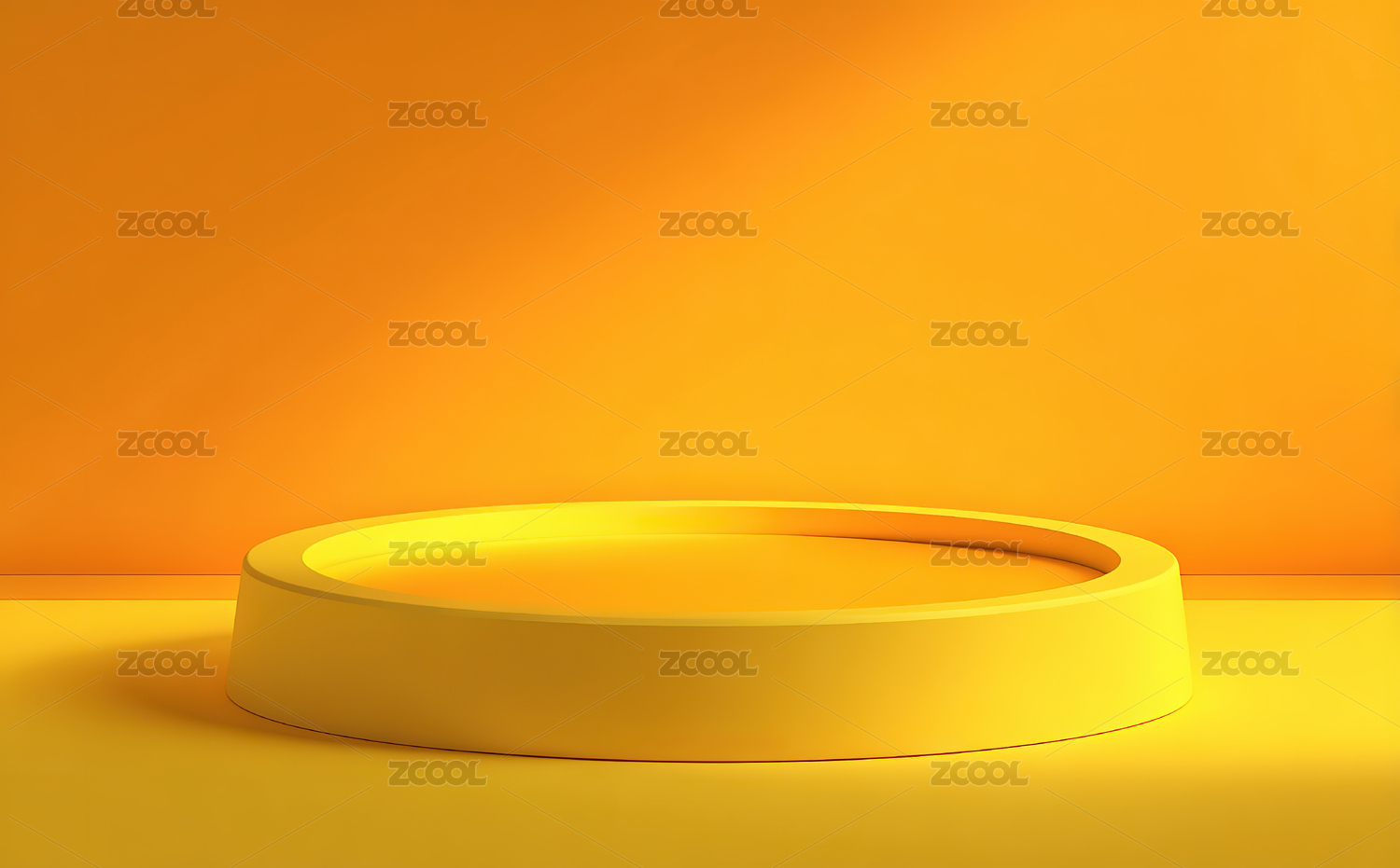 橙色背景下的简约圆形展示台