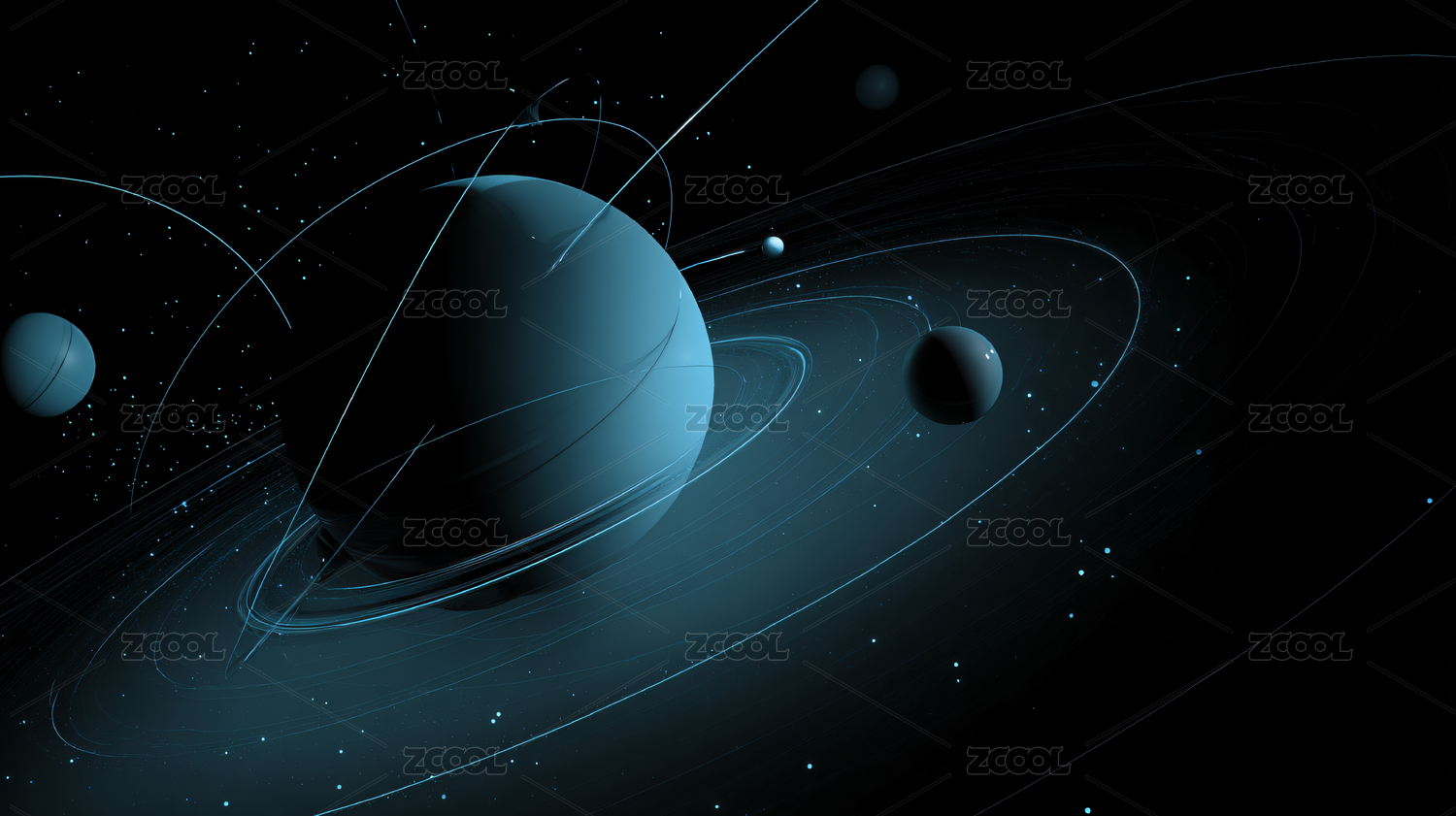 蓝色系宇宙星球场景图