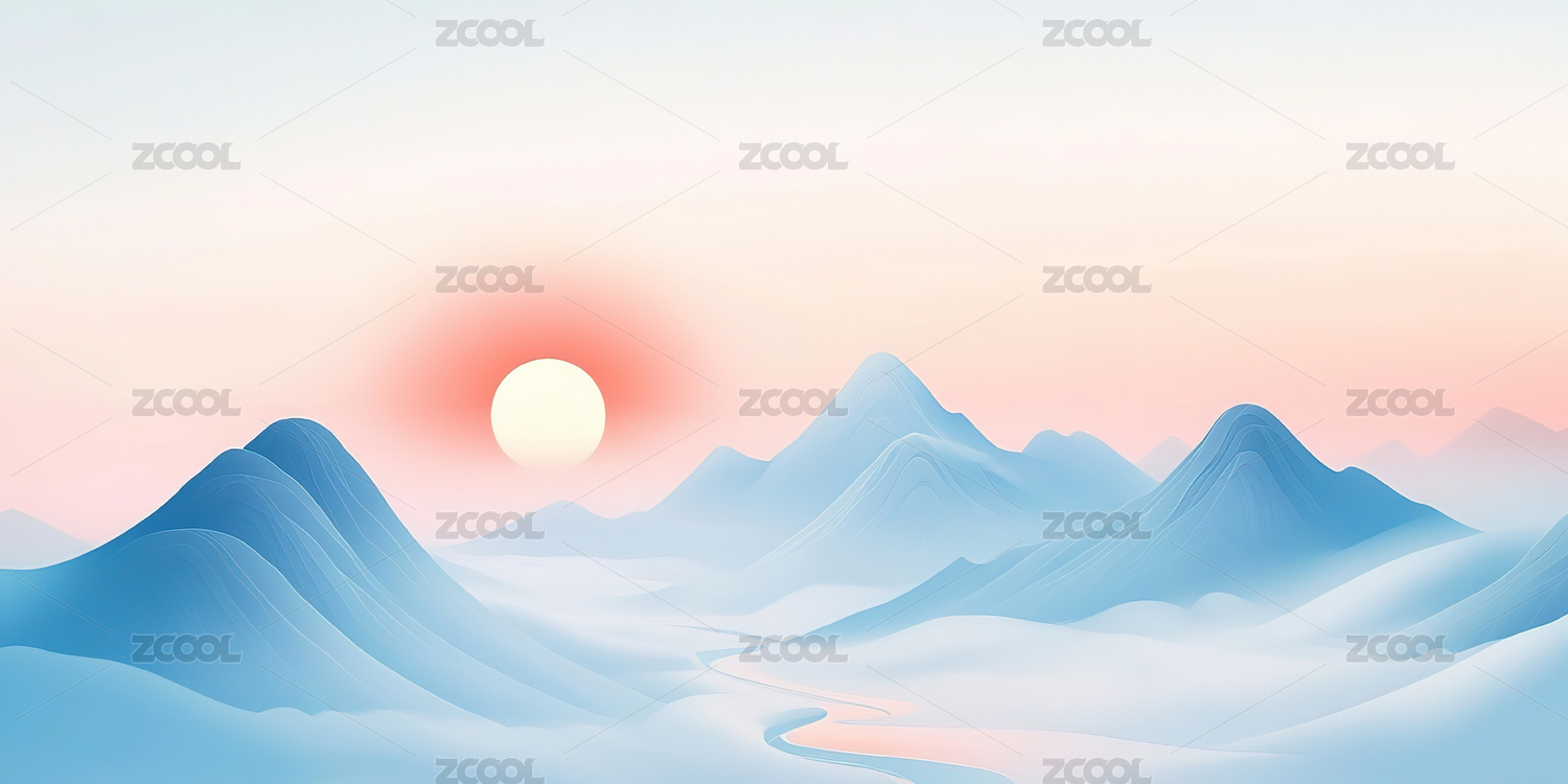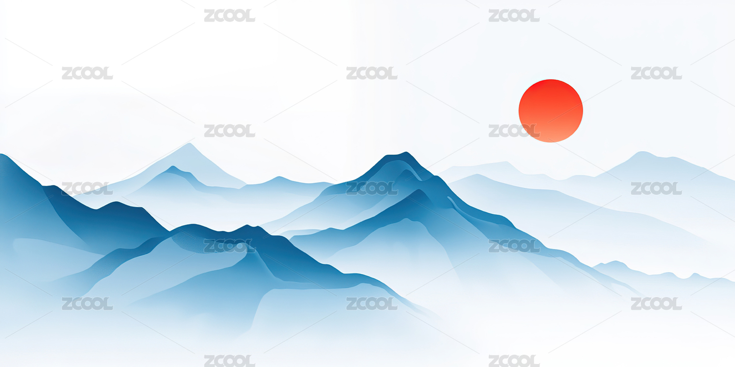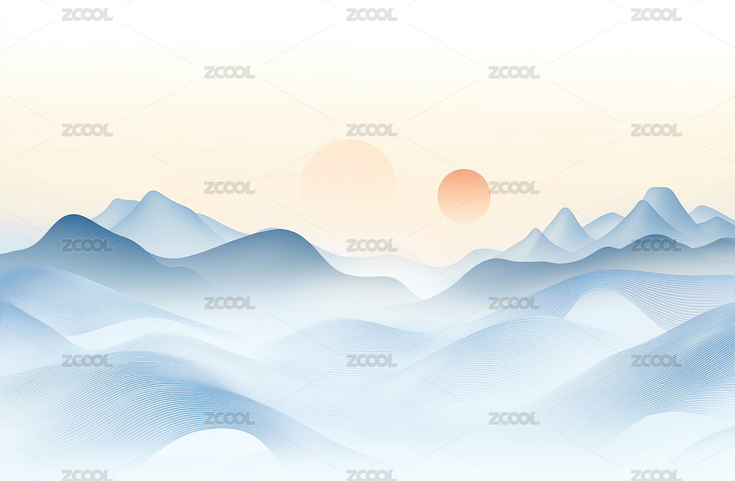 无人,自然,宁静,户外,自然美,AI数字艺术,水墨画,风景,中国画,蓝色