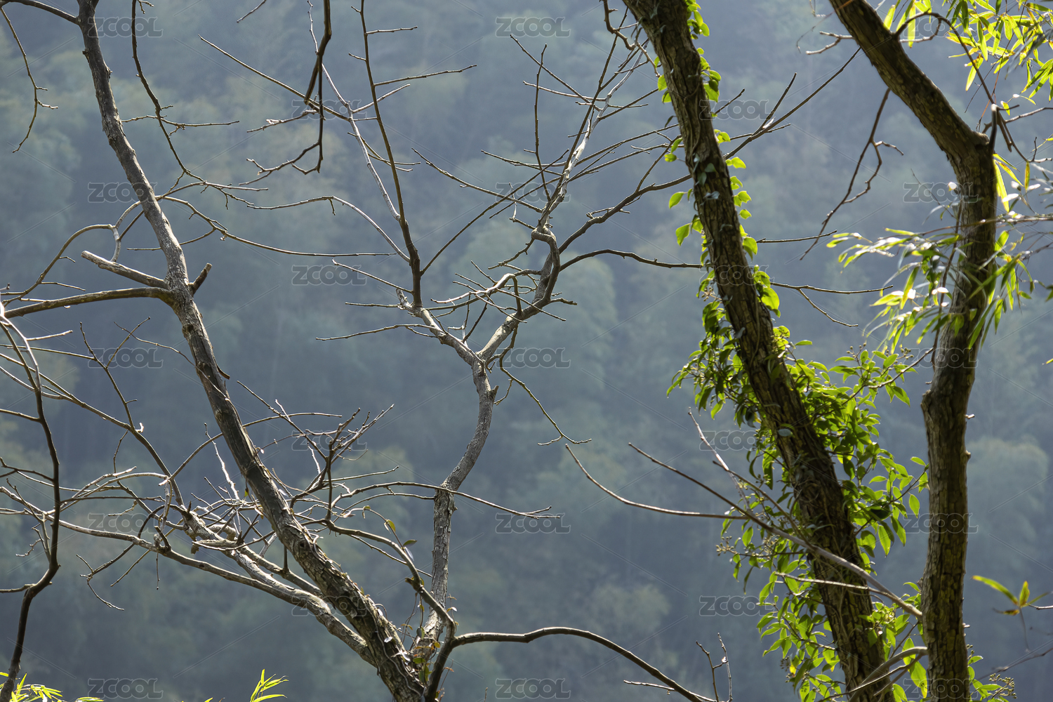 深山里重新生长拔高的枯朽树木