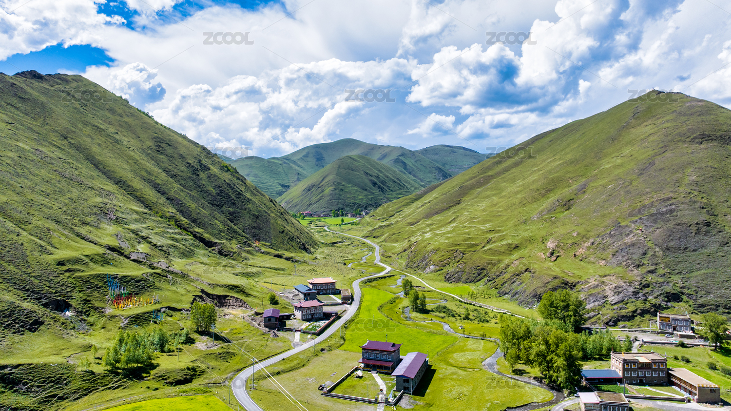 中国四川甘孜藏族自治州道孚县龙灯草原航拍