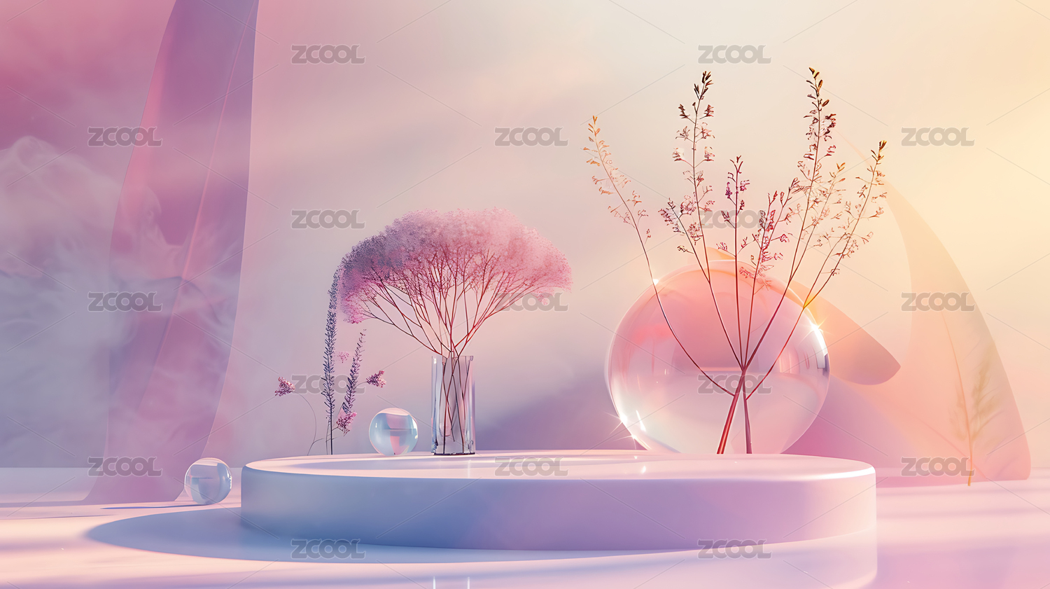 透明,玻璃,植物,梦幻,3d,展台,电商,清新,创意,底座