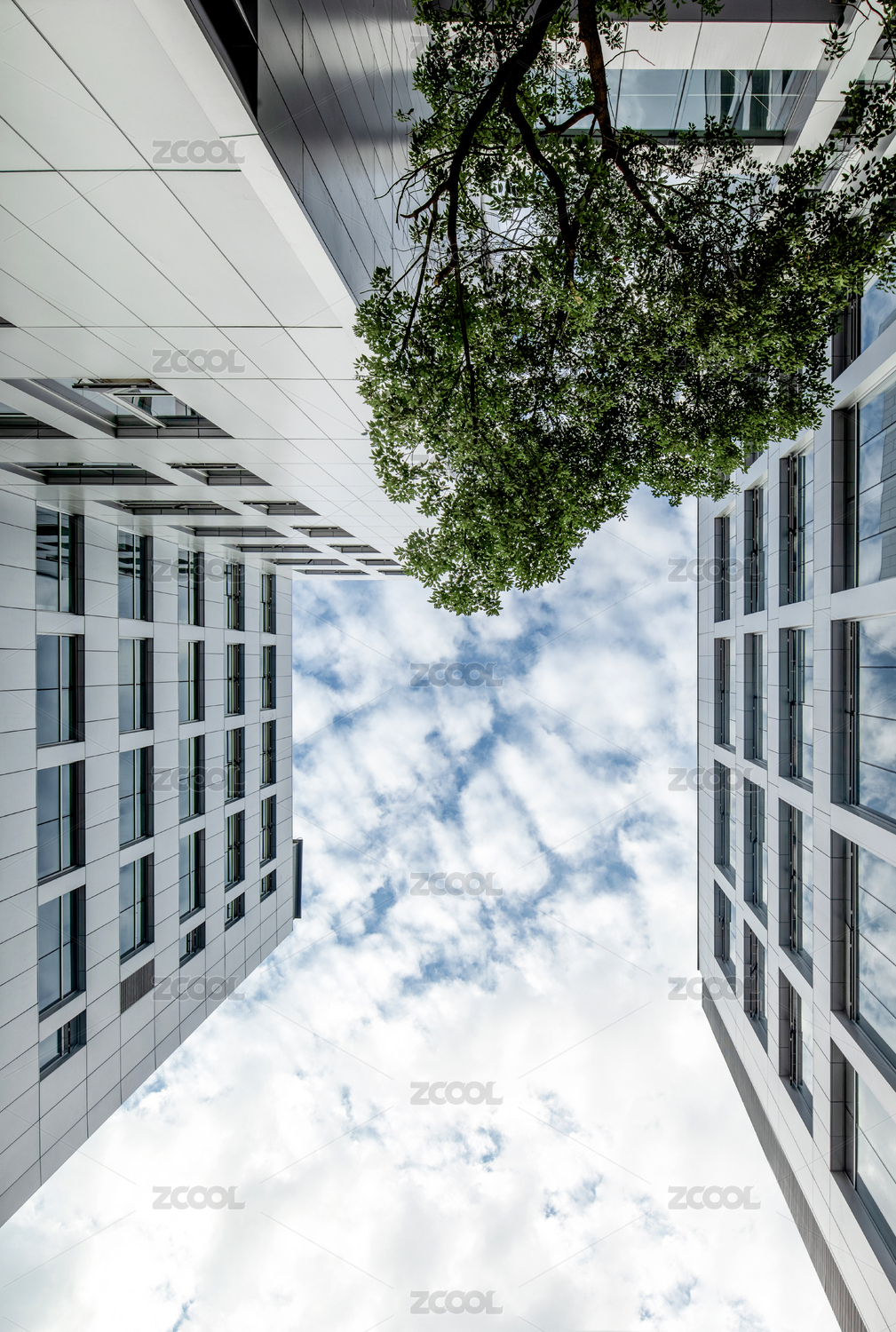 抬头仰视白天的写字楼建筑