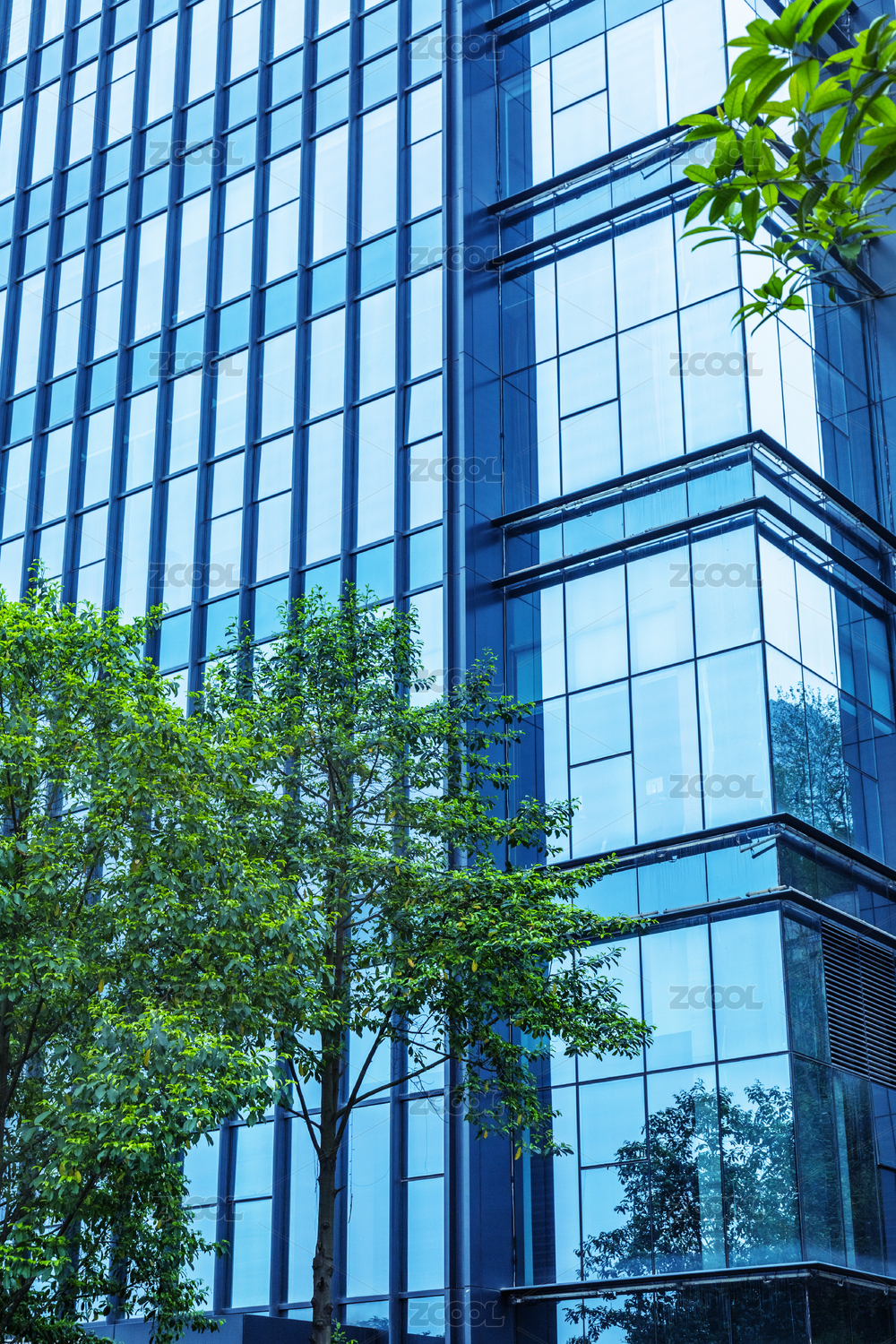 写字楼外部墙面和部分树木