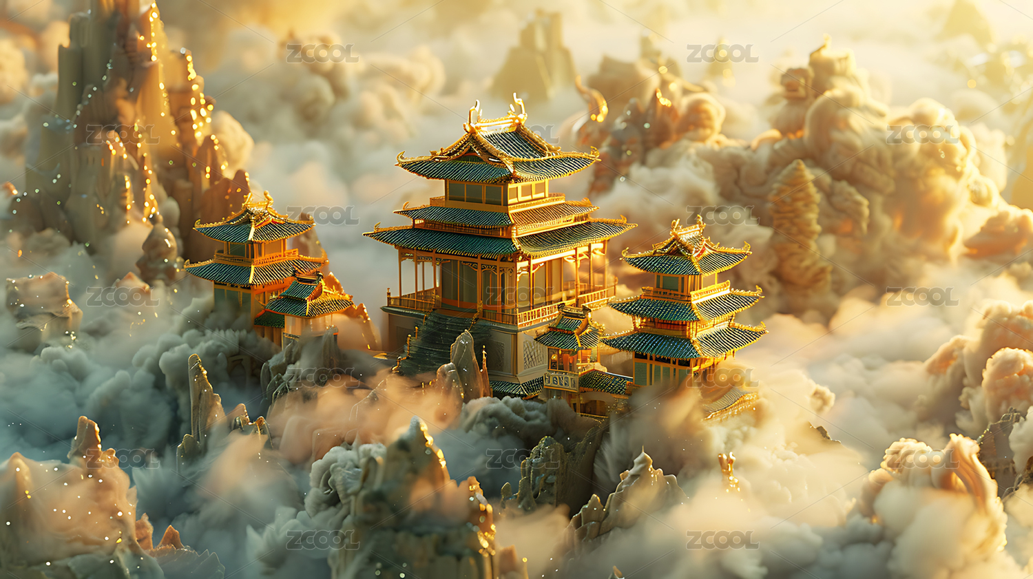 神话仙境建筑群场景插画