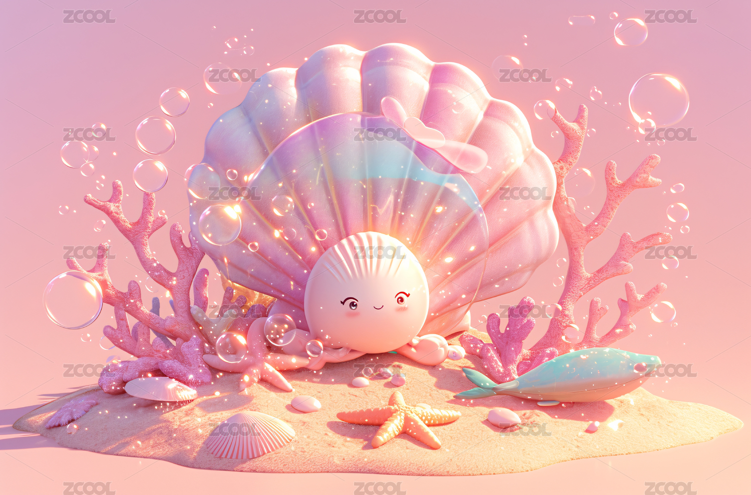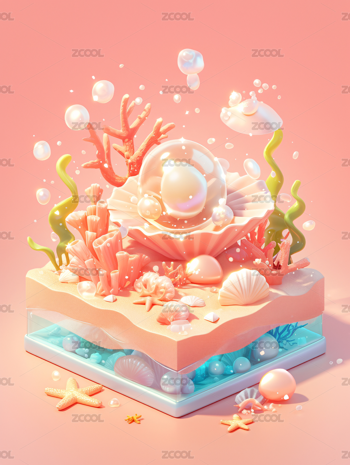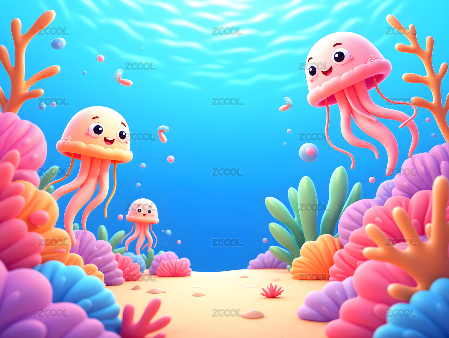 三维立体海底世界童趣珊瑚礁水草小场景背景