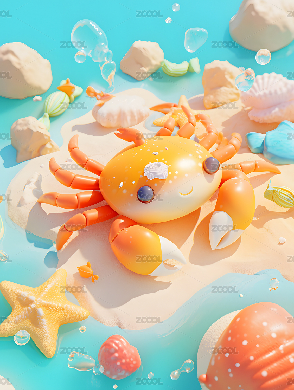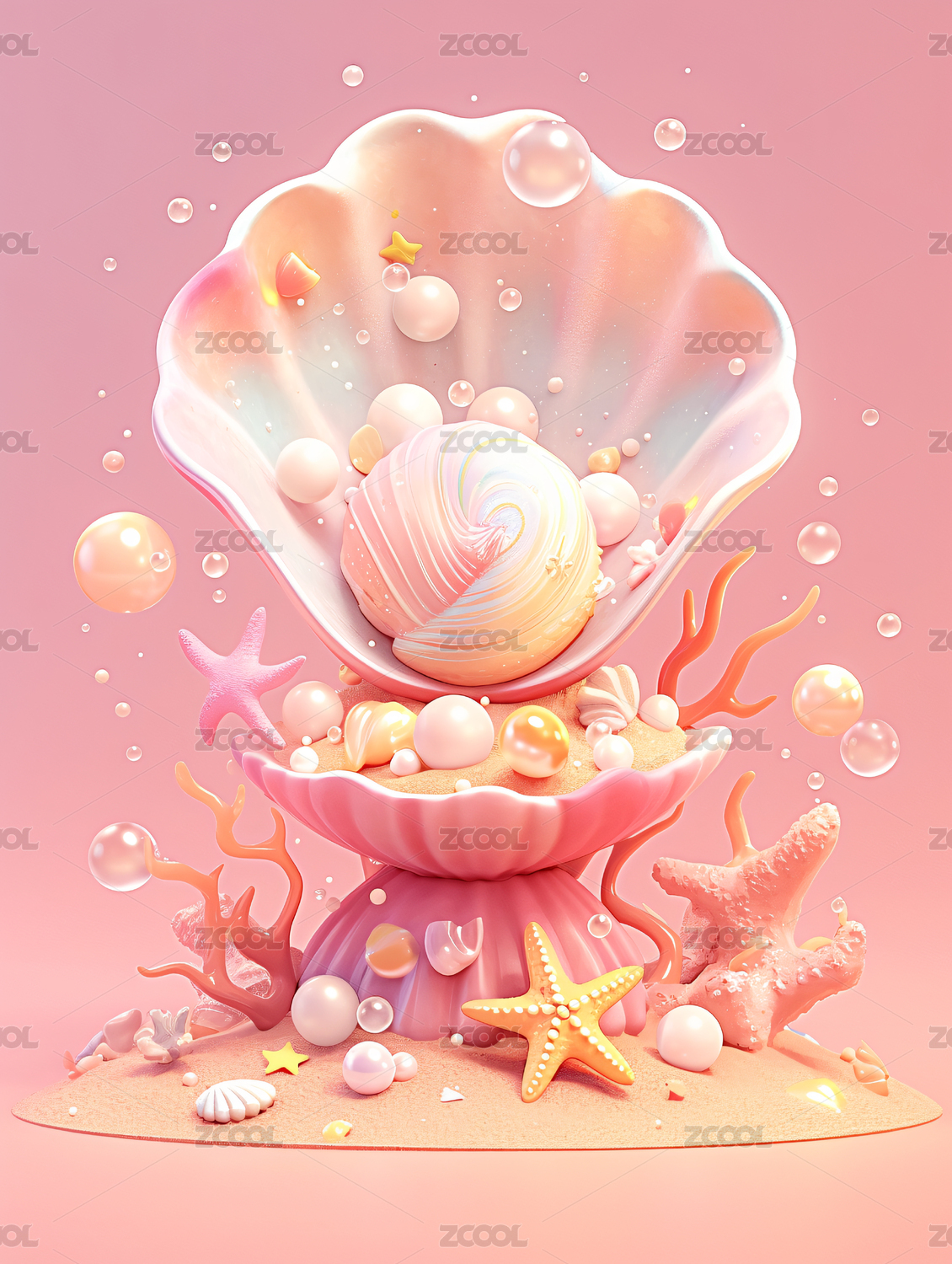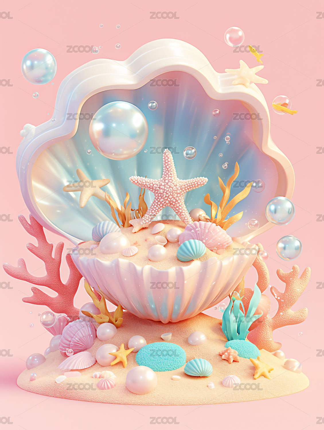 三维立体海底世界童趣珊瑚礁水草小场景背景
