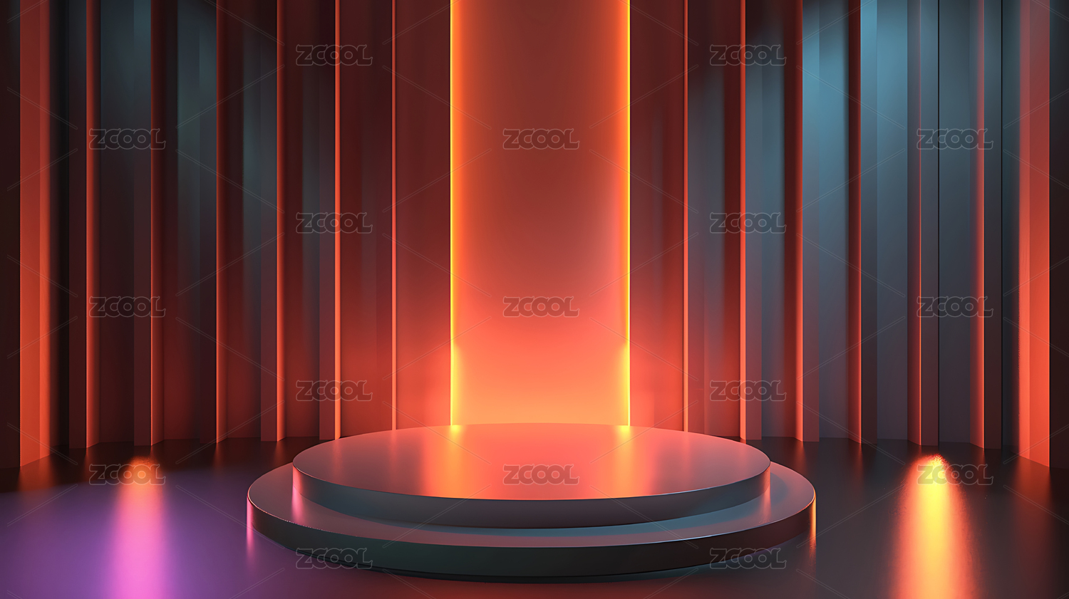 圆形舞台上的霓虹灯光效果