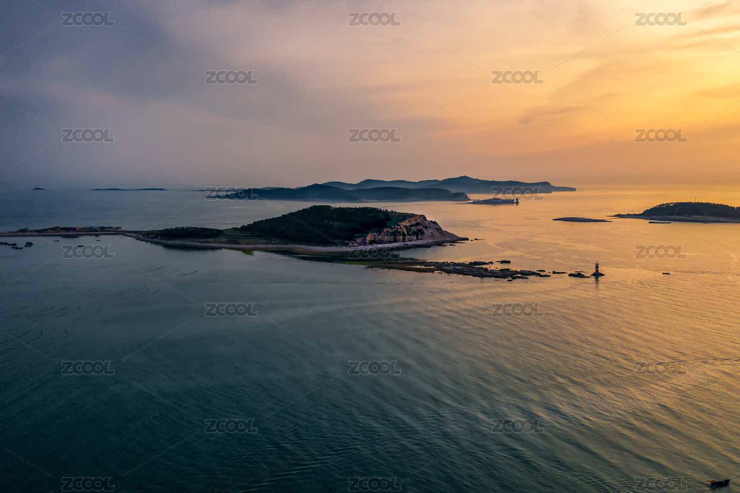 中国山东长岛县航拍海上风光