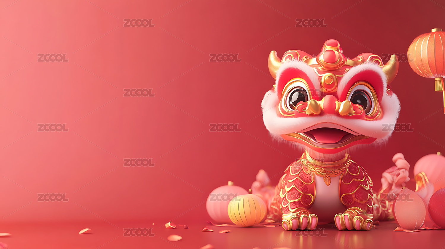 AIGCTP2024,醒狮,新年,红色,年兽,春节,传统,节日,庆祝,喜庆