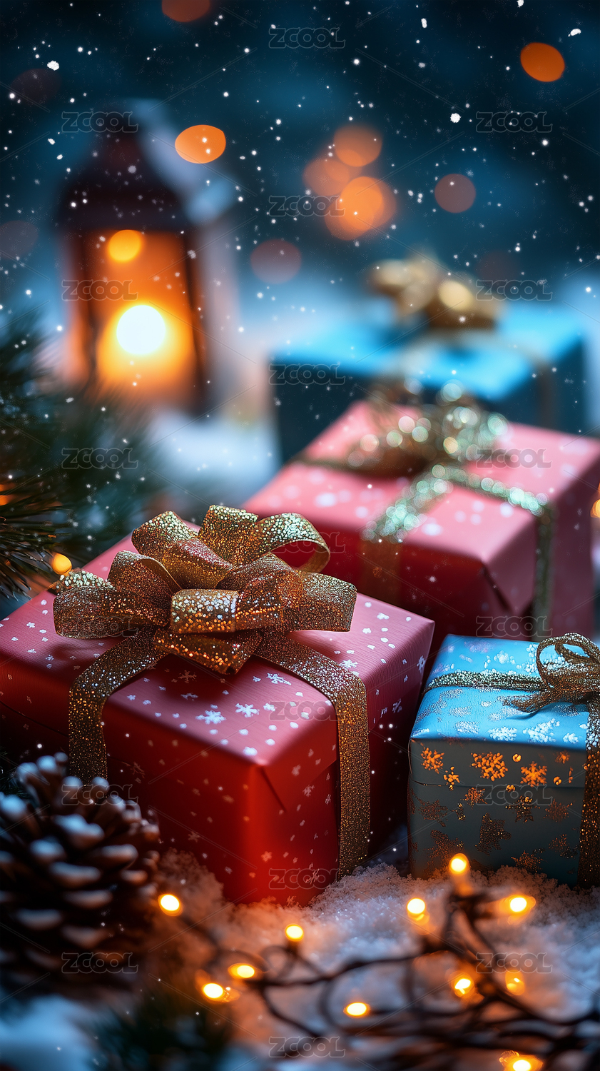 圣诞节,圣诞,圣诞树,彩灯,礼物盒,冬青叶,红果,雪花,节日,温馨