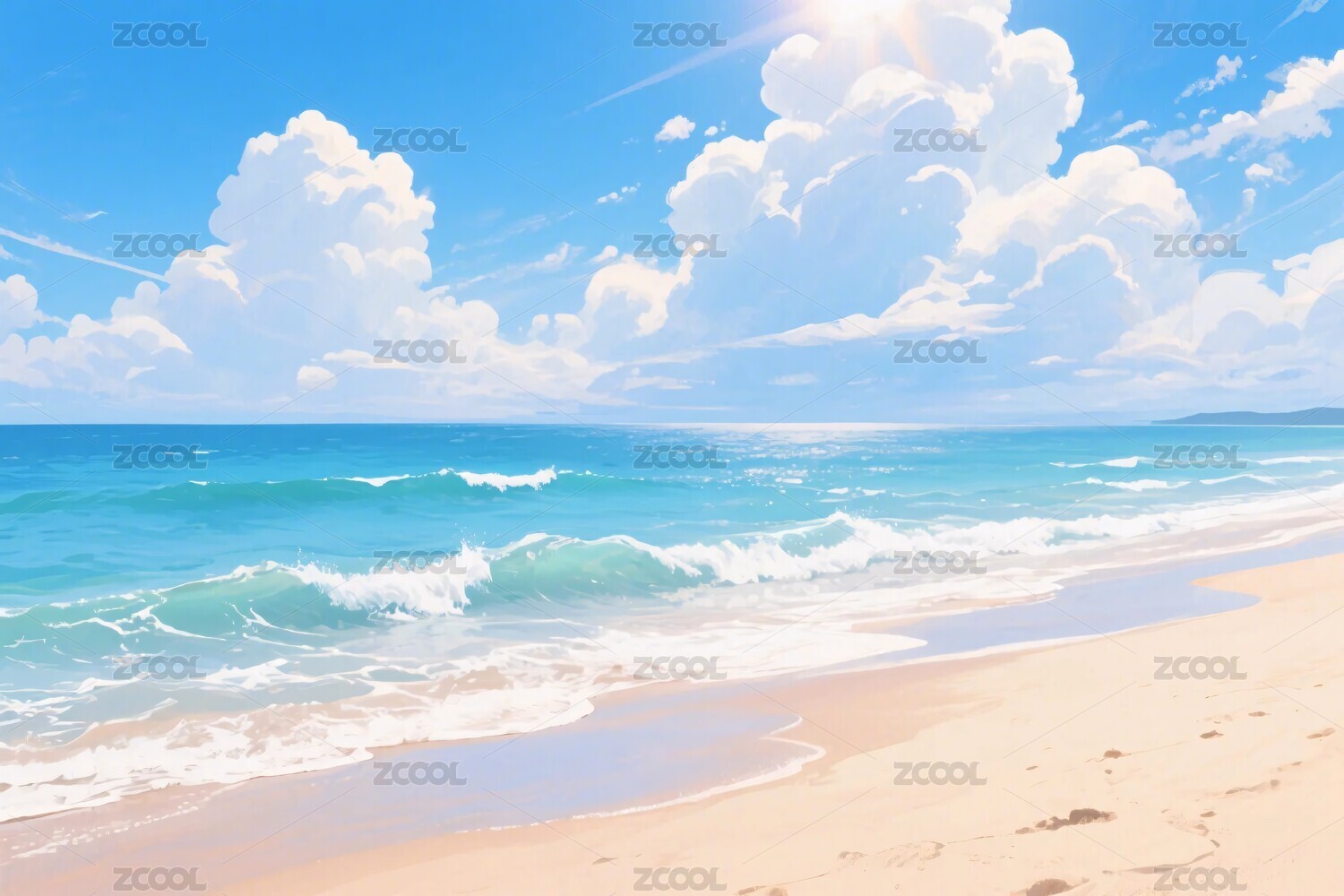 风景,AIGCFG01,新海诚,日漫,插画,海浪,海边,大海,户外