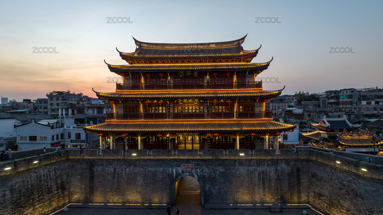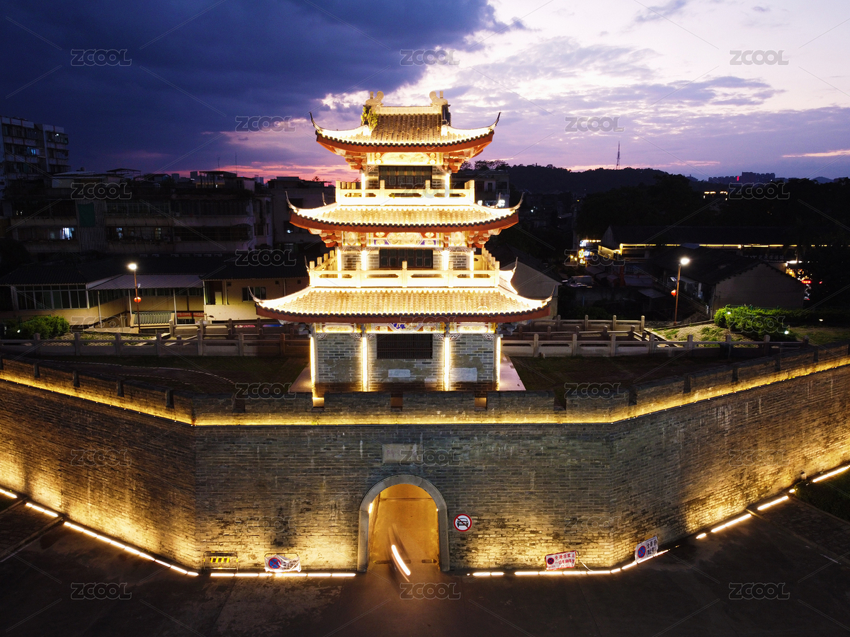 广东省潮州市湘桥区潮州古城广济楼夜景航拍