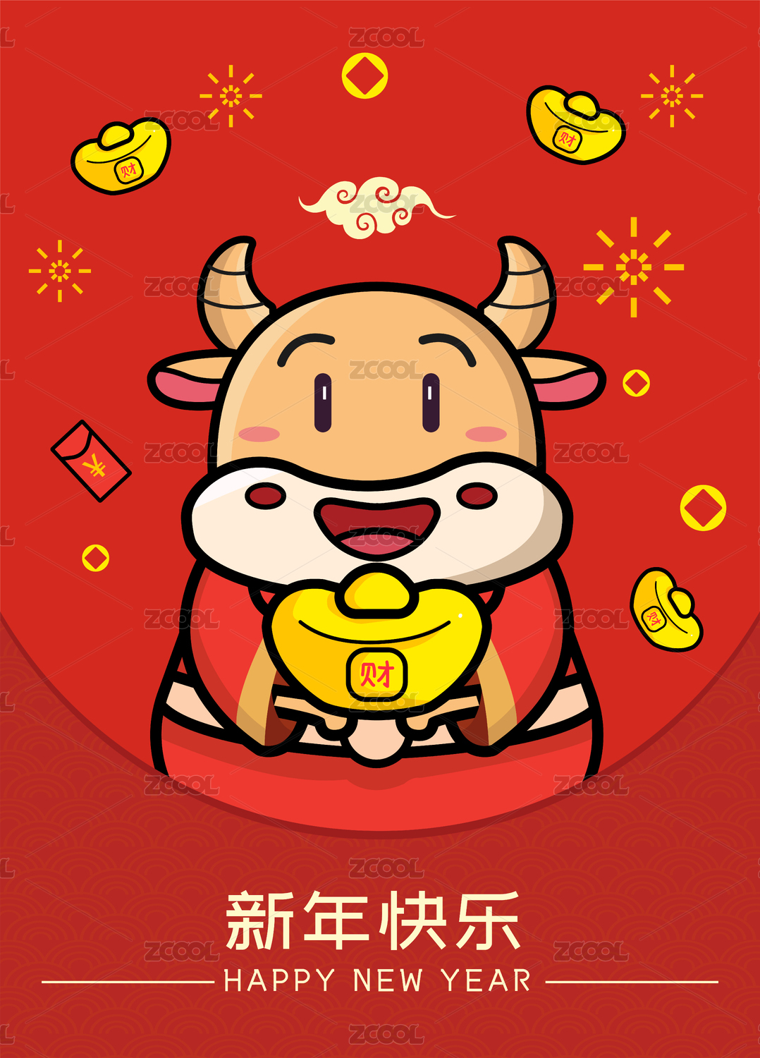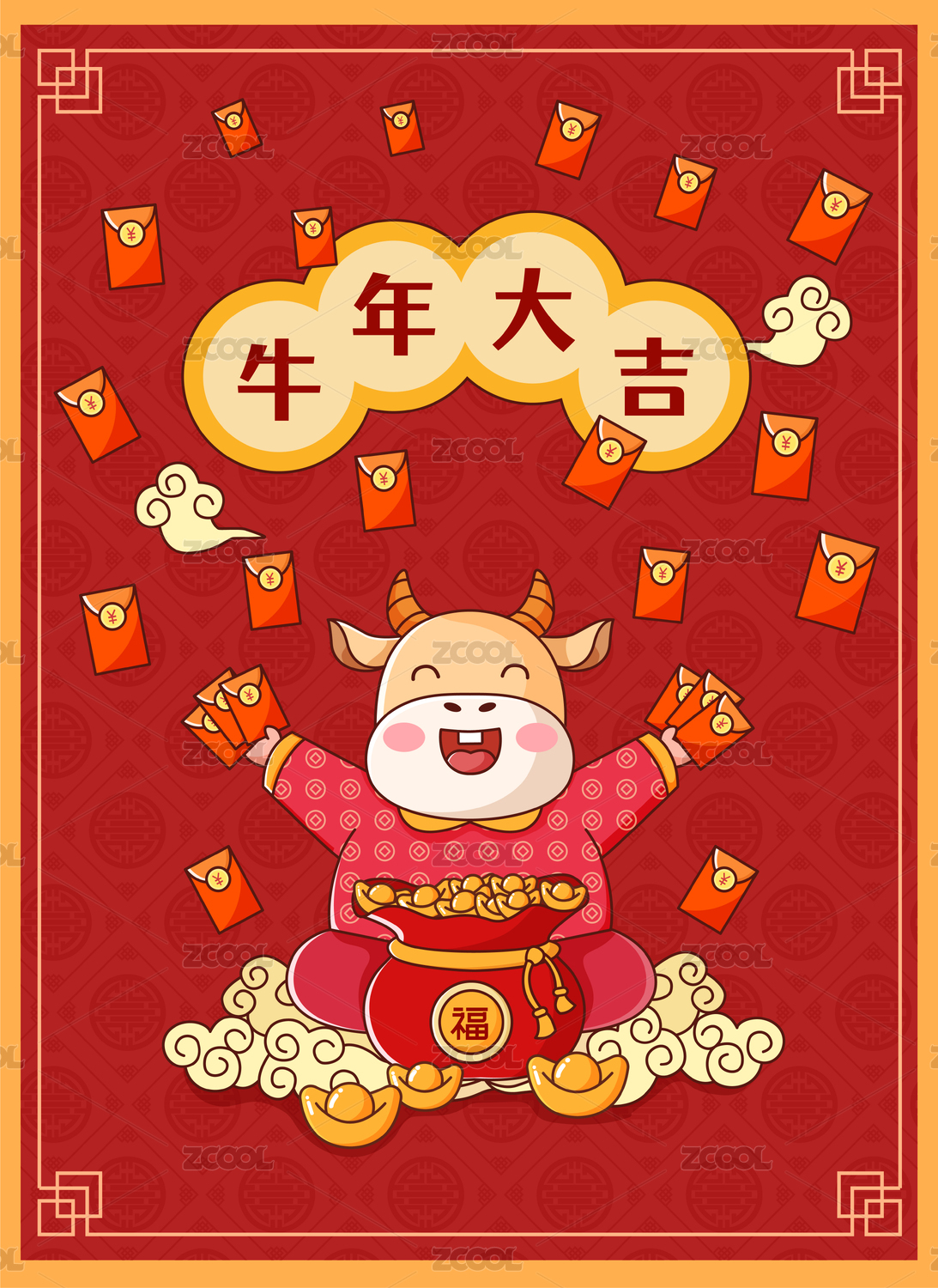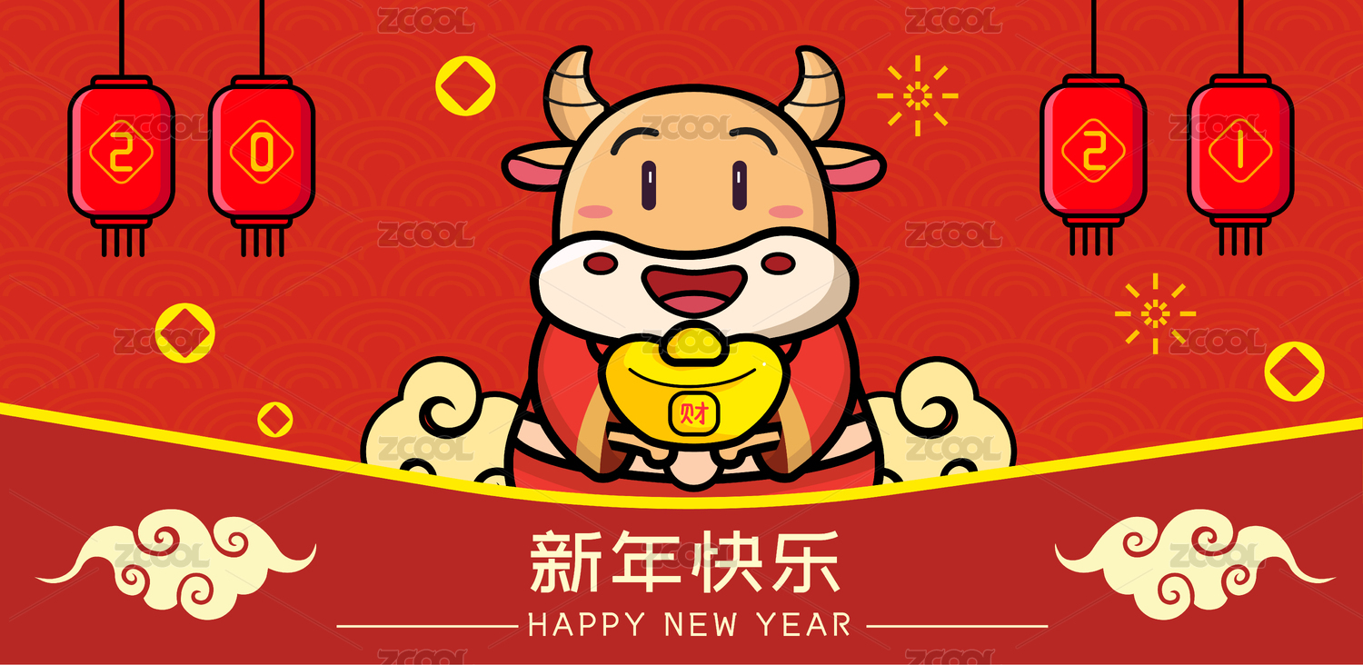 中国,传统节日,新年,牛,祝福,灯笼,福,鞭炮,元宝