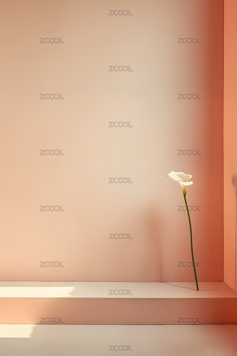 白色马蹄莲在简约空间光影中的静物电商展台