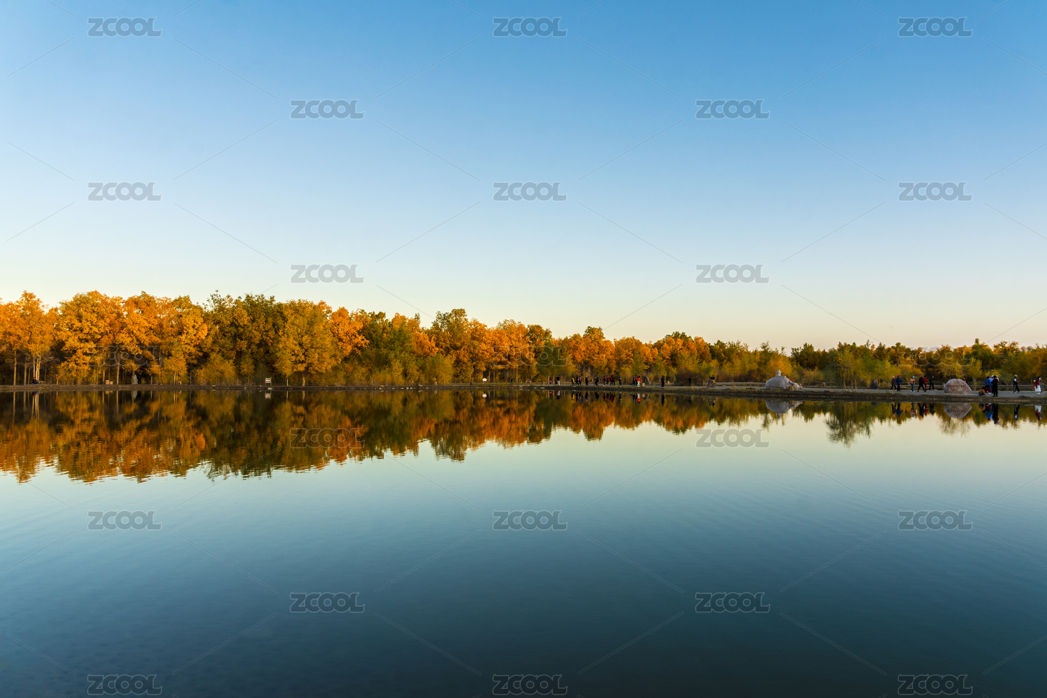 甘肃酒泉金塔胡杨林秋季湖边金色胡杨