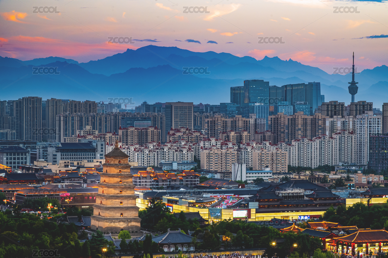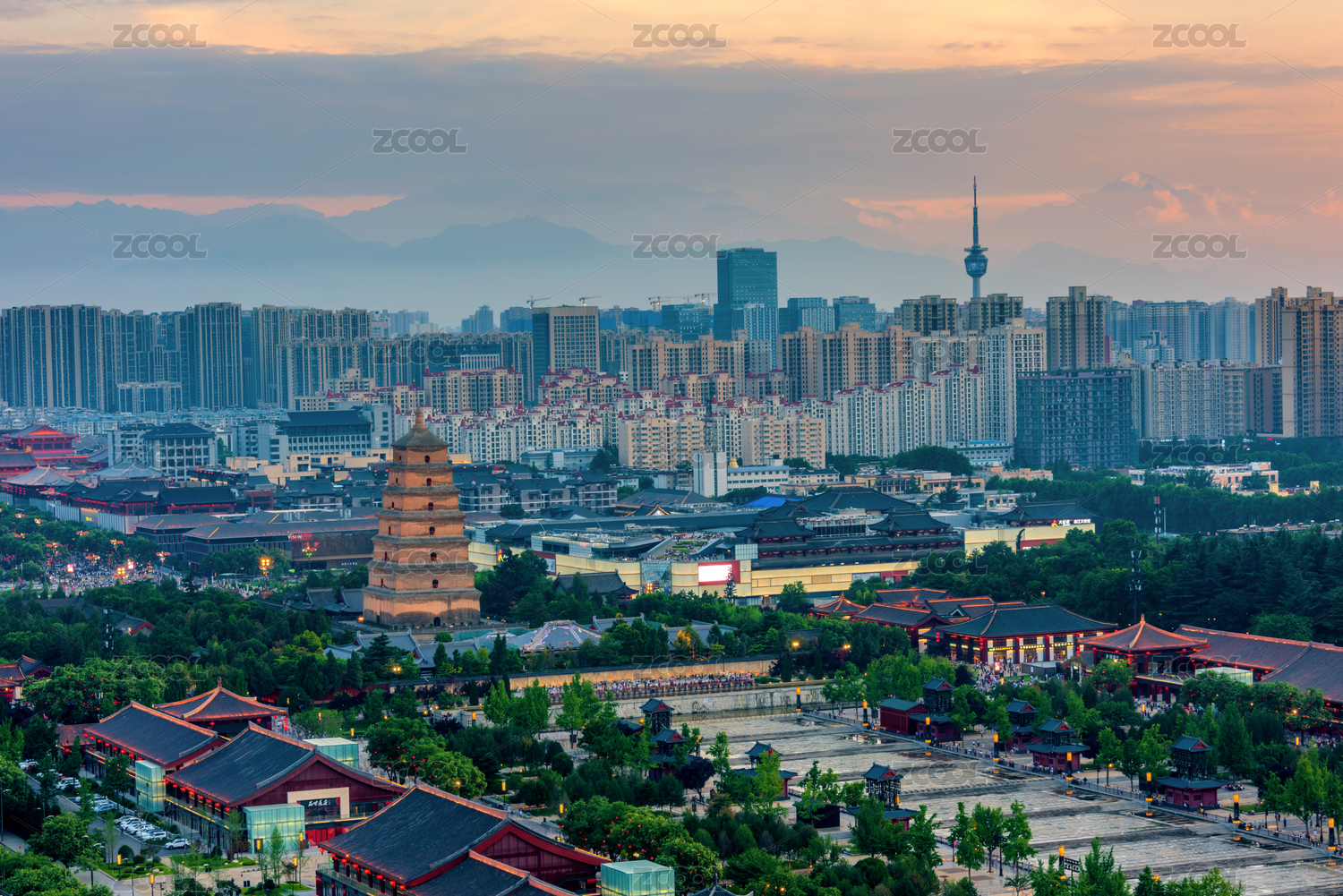 中国陕西西安大慈恩寺大雁塔日暮风光