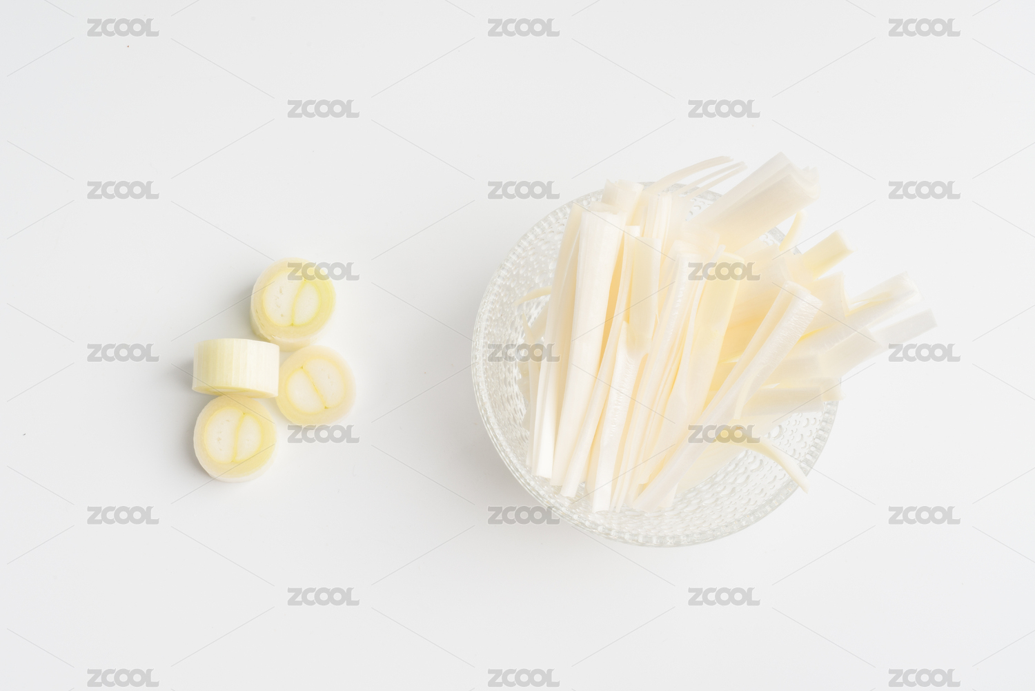 新鲜的蔬菜 常作为调味料的大葱切成葱丝