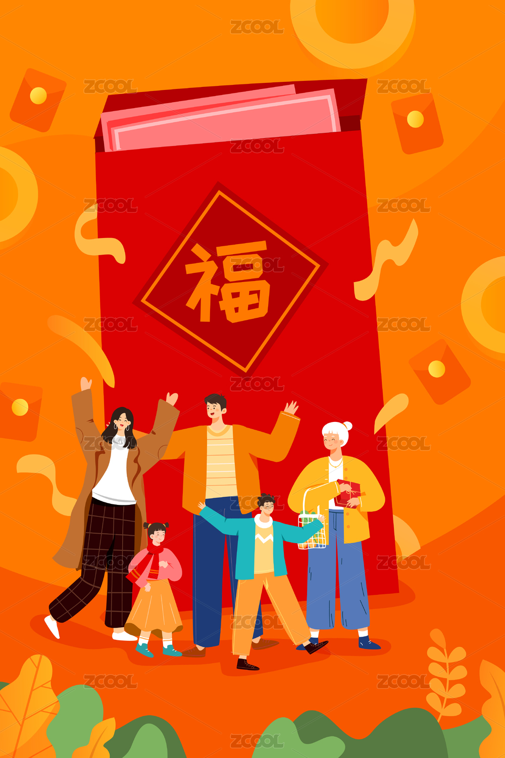 家人新年红包矢量插画