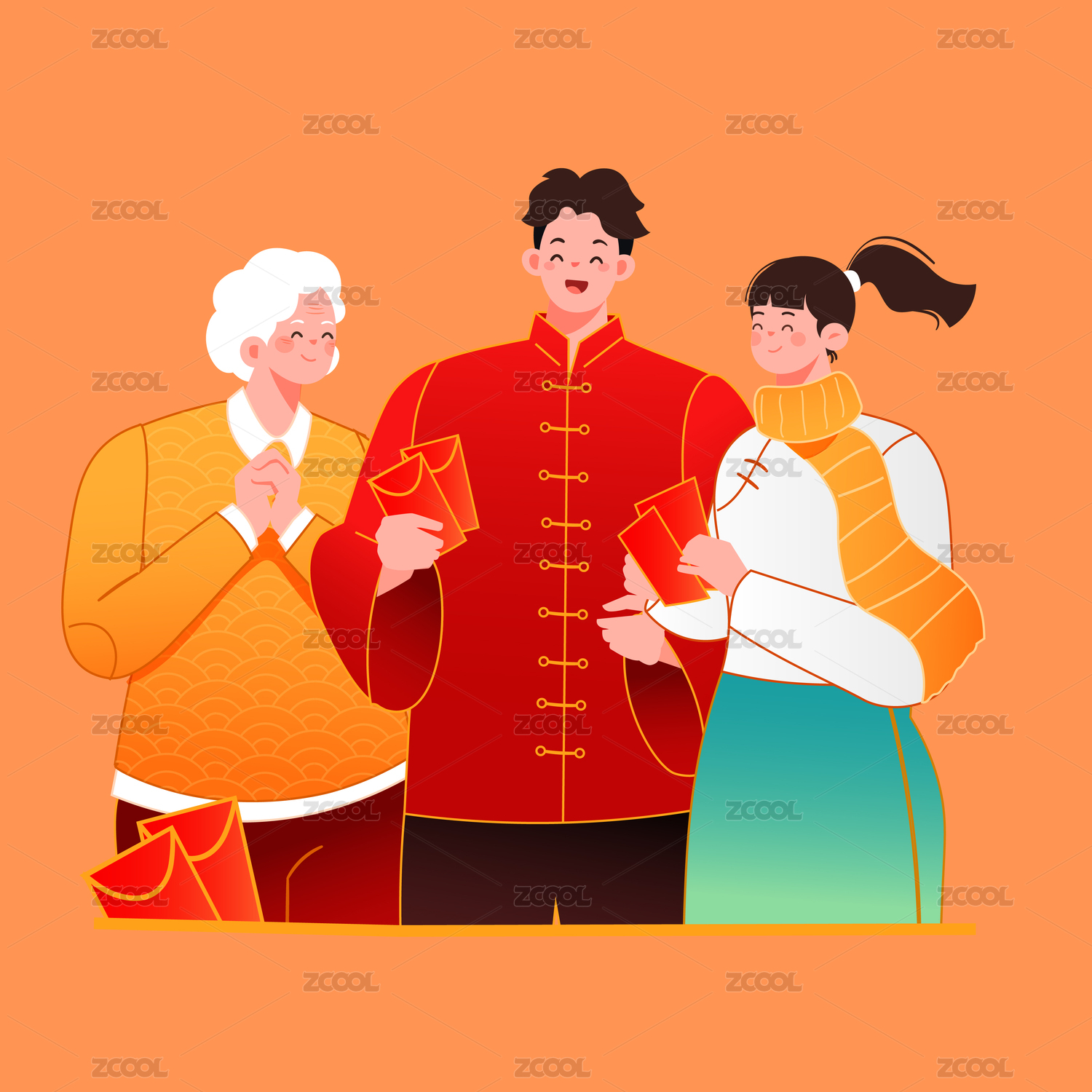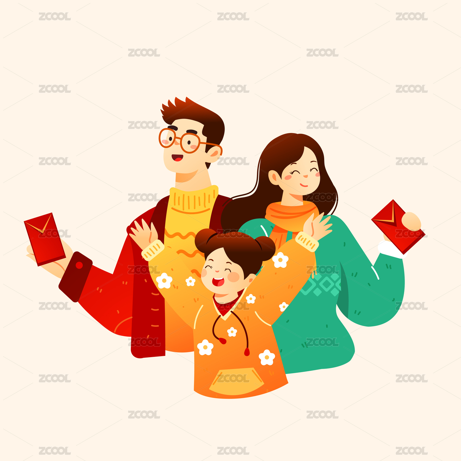 春节家人红包矢量插画