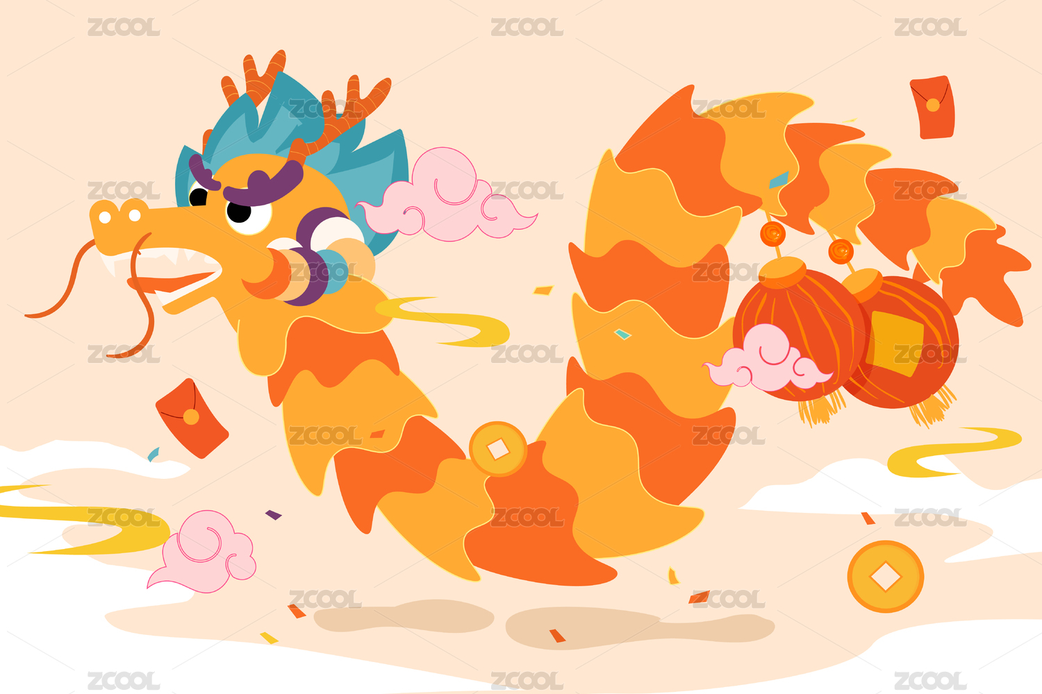 节日神龙卡通插画