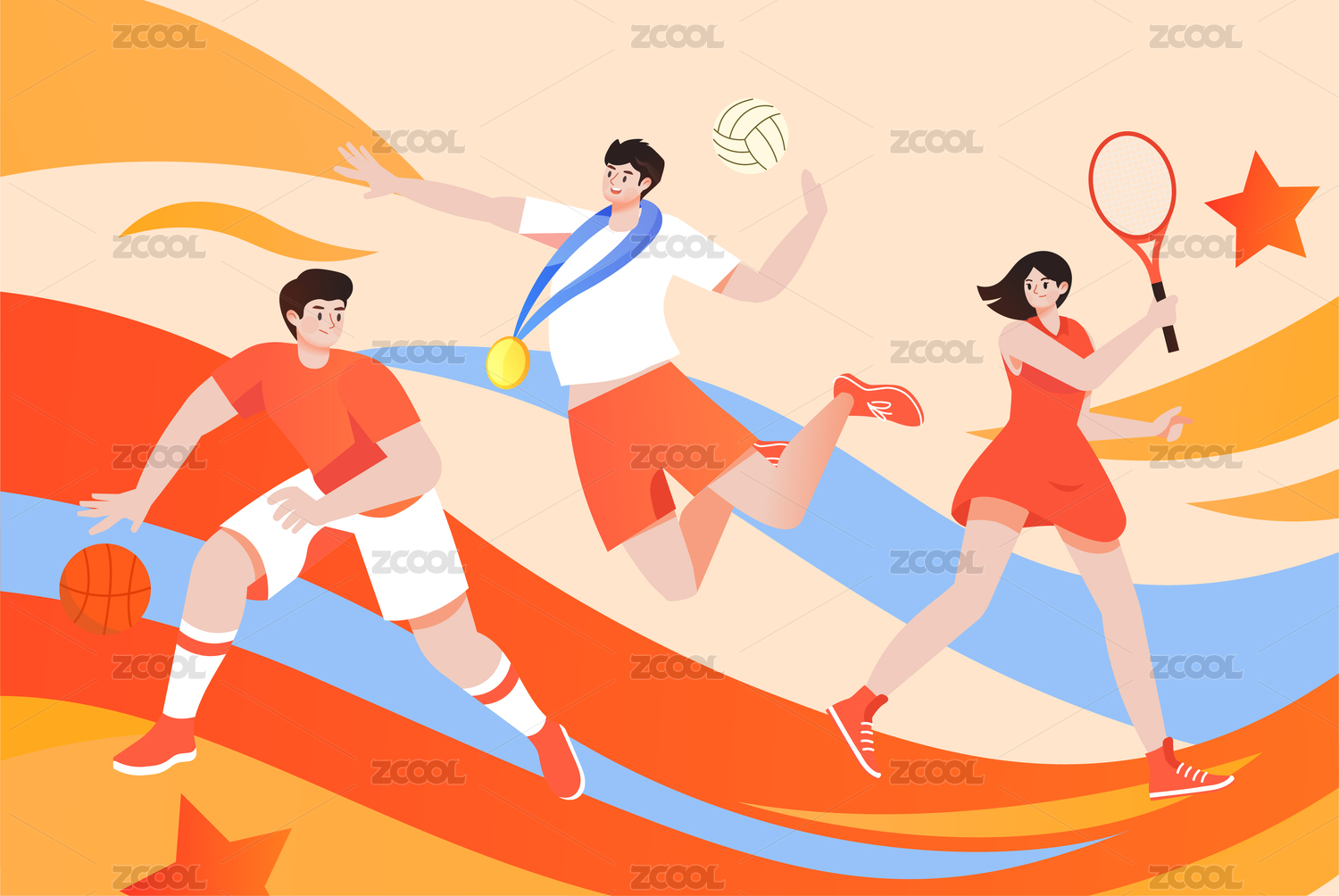 夏天人物锻炼身体运动健身打羽毛球比赛插画