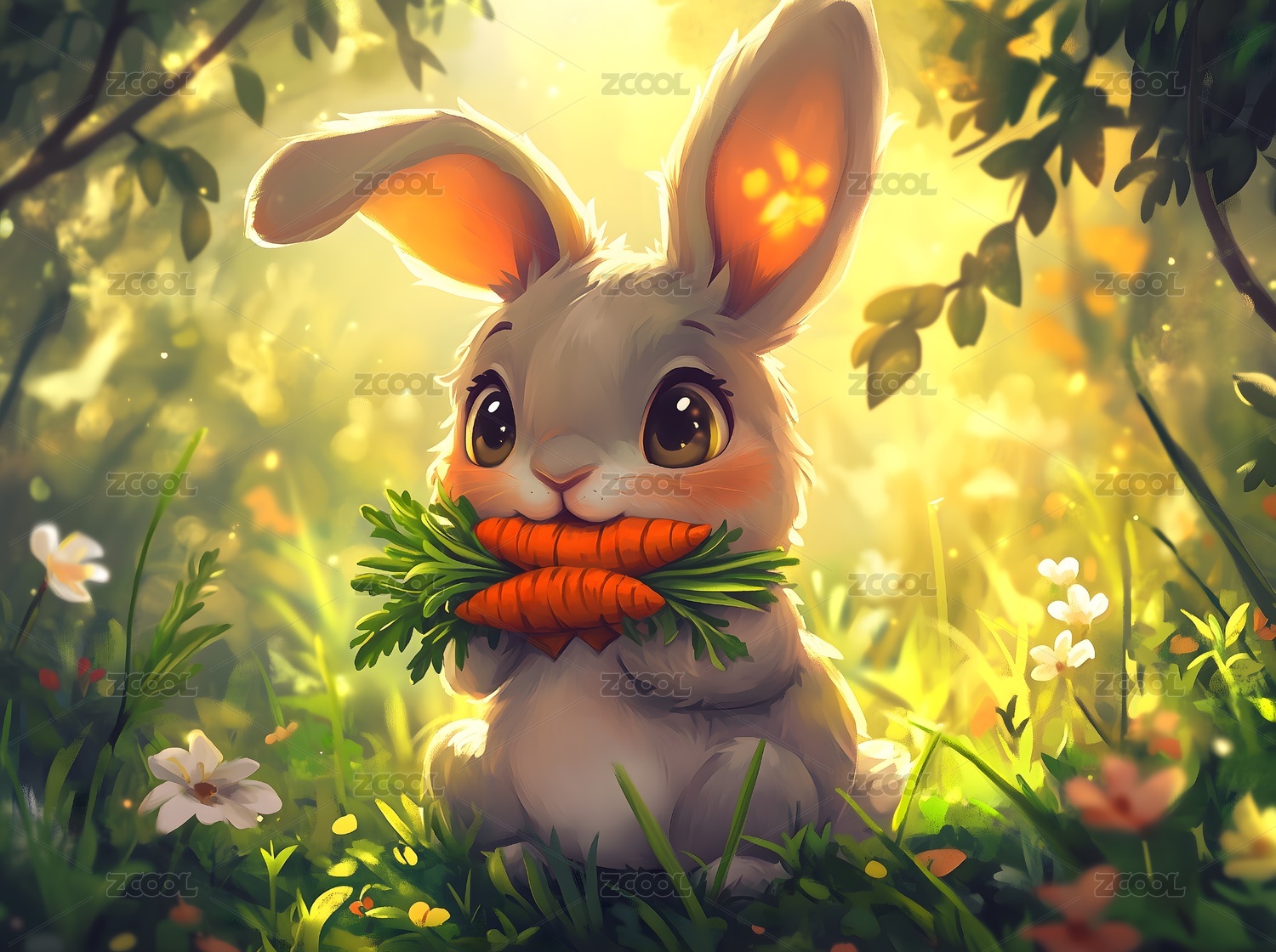 卡通小兔子吃着胡萝卜