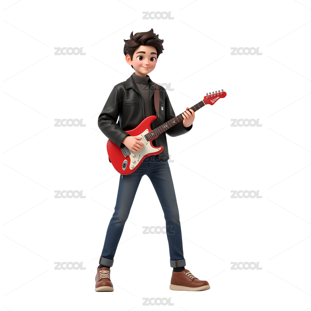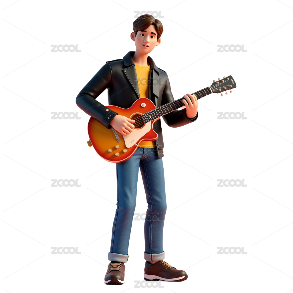 拿吉他的男人三维插画