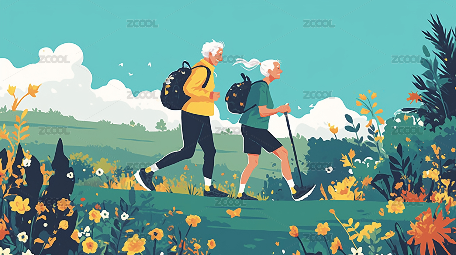 秋天秋游立秋秋分户外活动运动卡通漫画插画