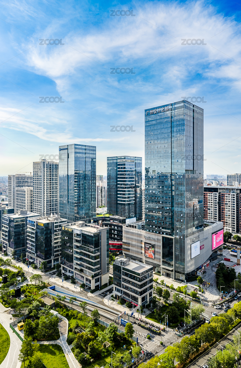 中国广东广州黄埔区萝岗香雪商业建筑群航拍