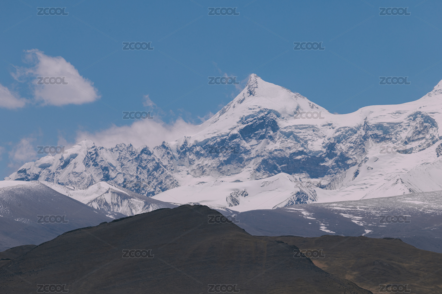 中国西藏日喀则春季的佩枯措和希夏邦马群山