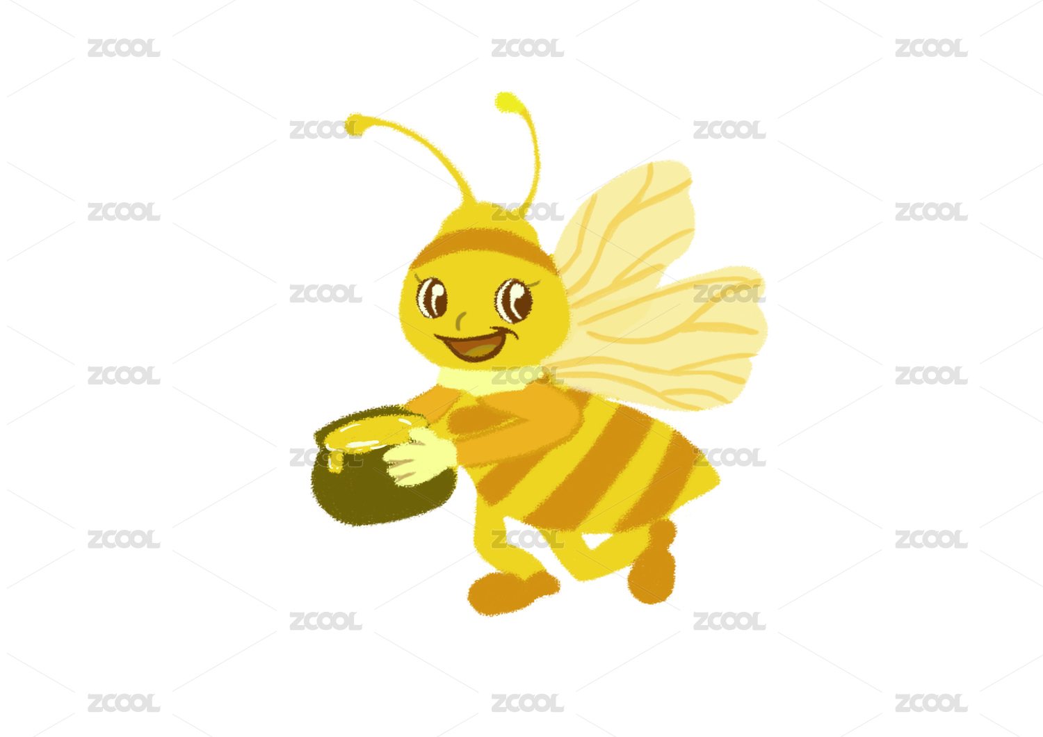 蜜蜂,卡通形象,蜂蜜,可爱,描边风格,插图,原创,形象设计,昆虫,甜蜜