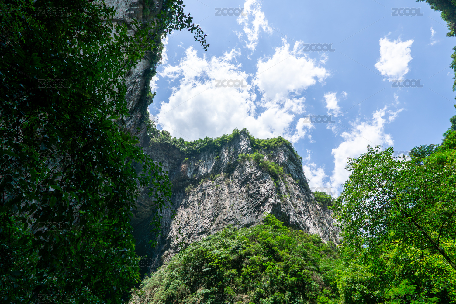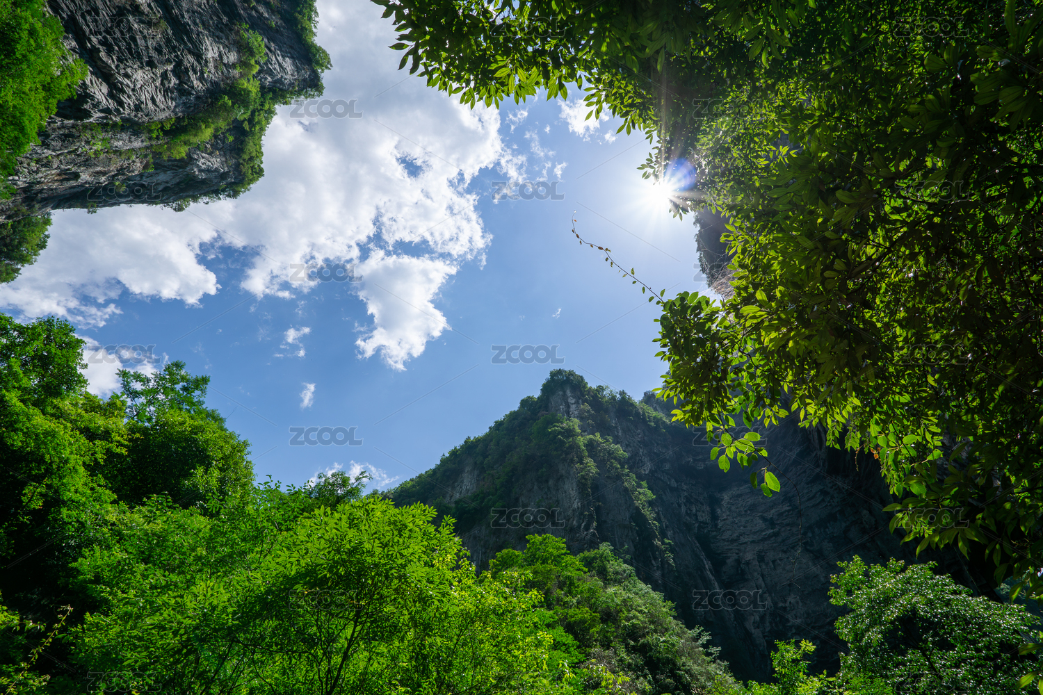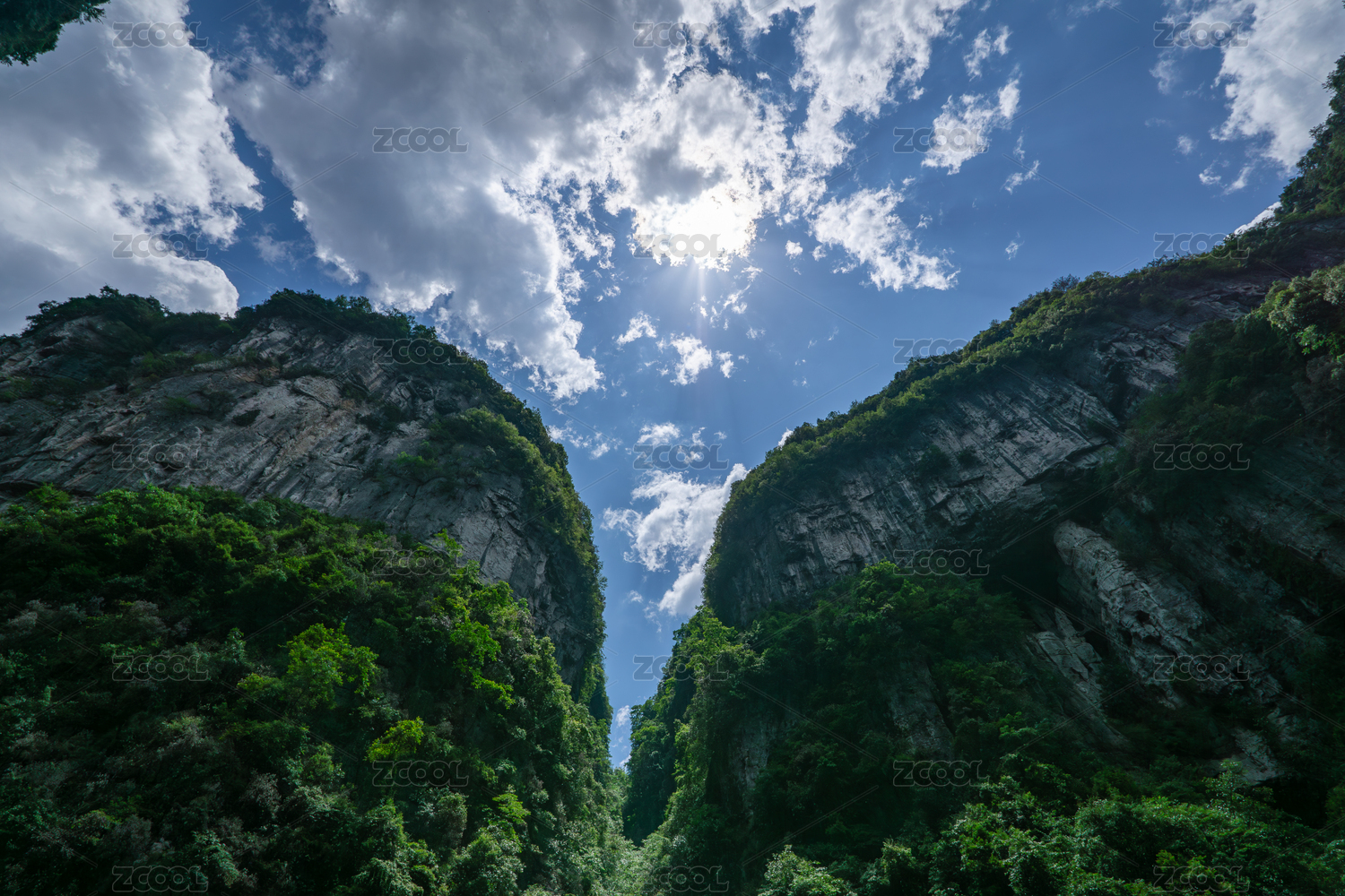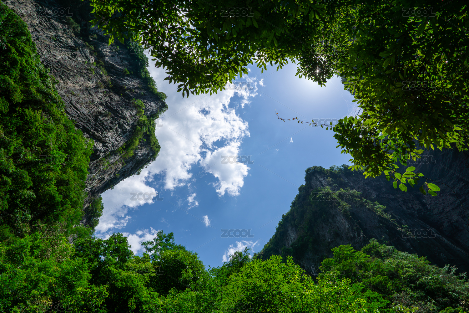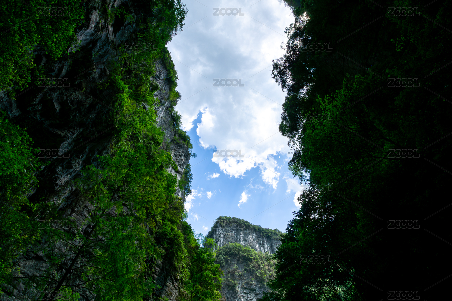 深山,深山老林,大地缝,裂缝,深沟,山沟,仰视,仰望,蓝天,天空