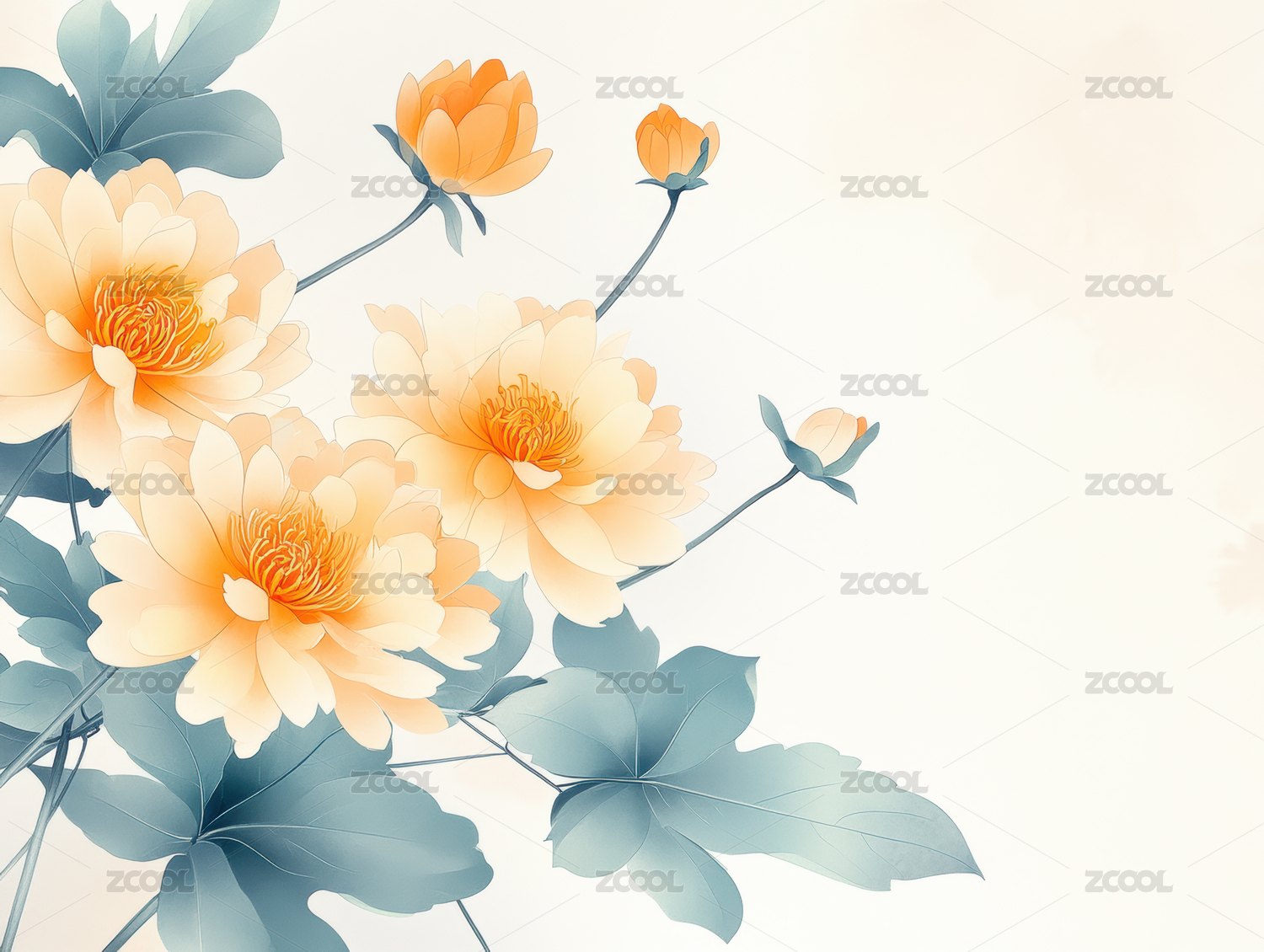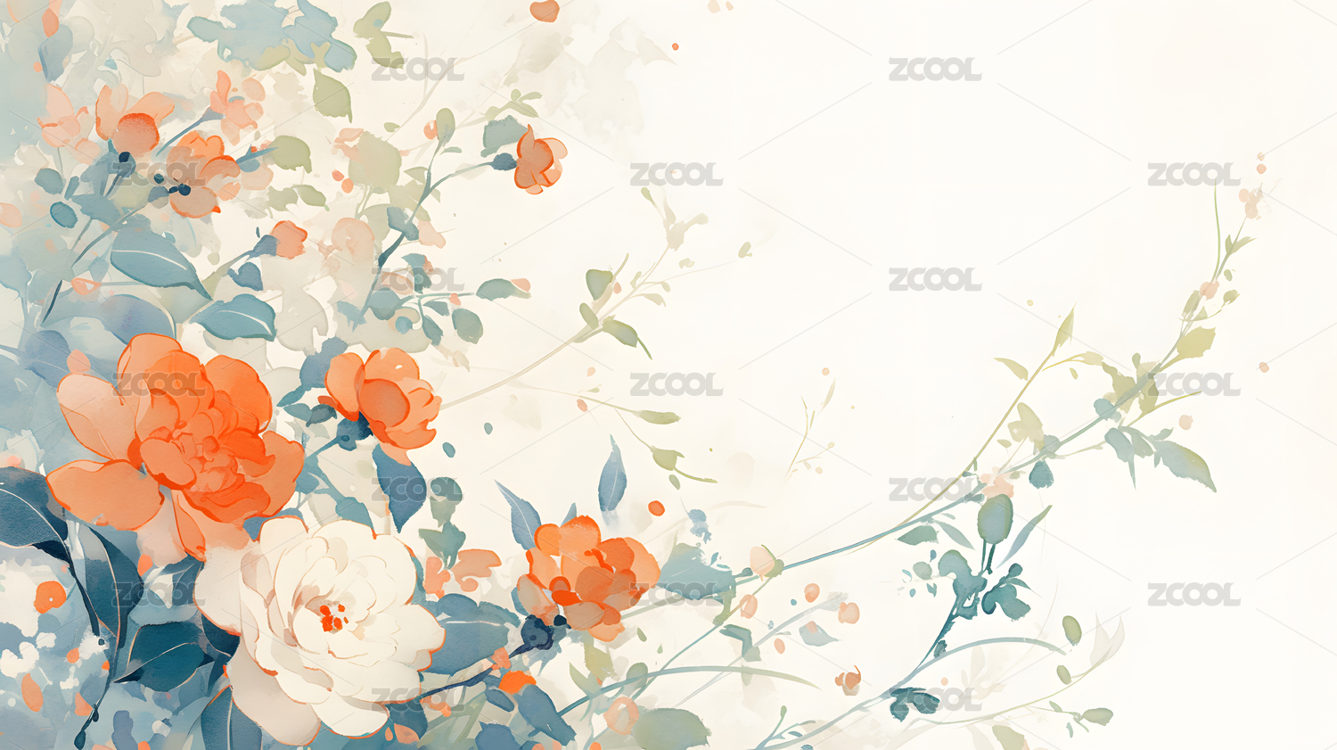 中国风国画风格水彩风格水墨风格牡丹花白色