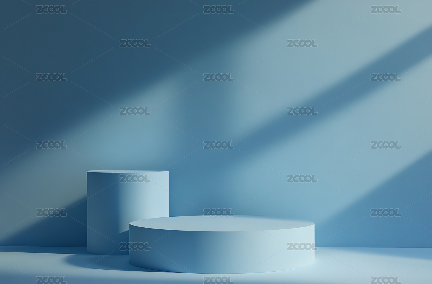 蓝色墙壁上的空地板
