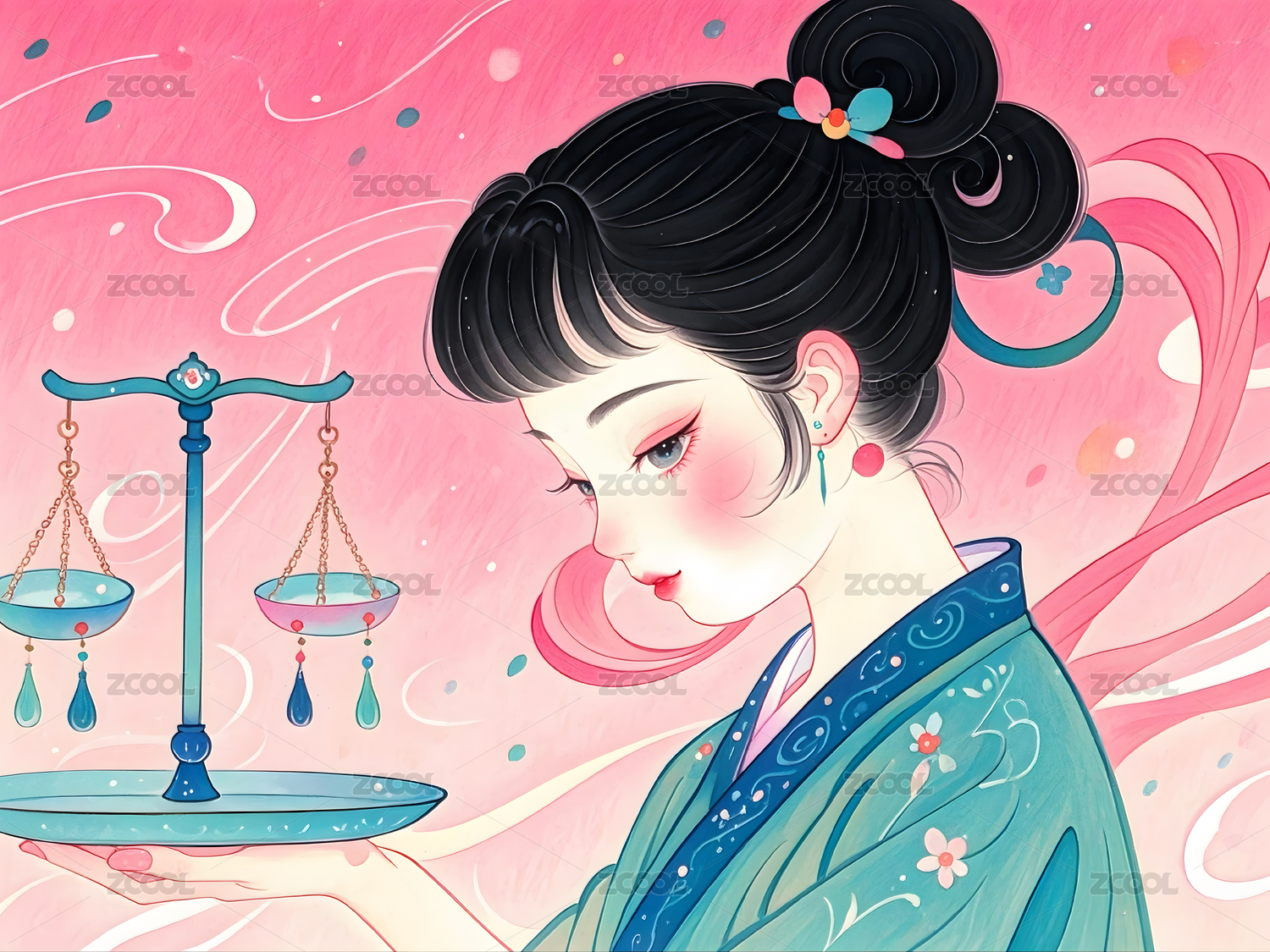 十二星座,星座,彩铅,简笔,卡通,抽象,二次元,女孩,天秤座,天秤