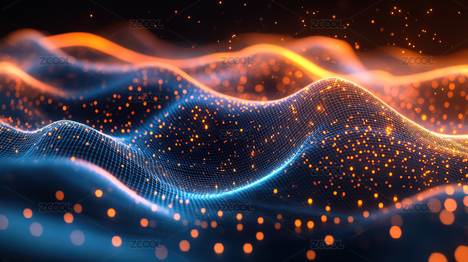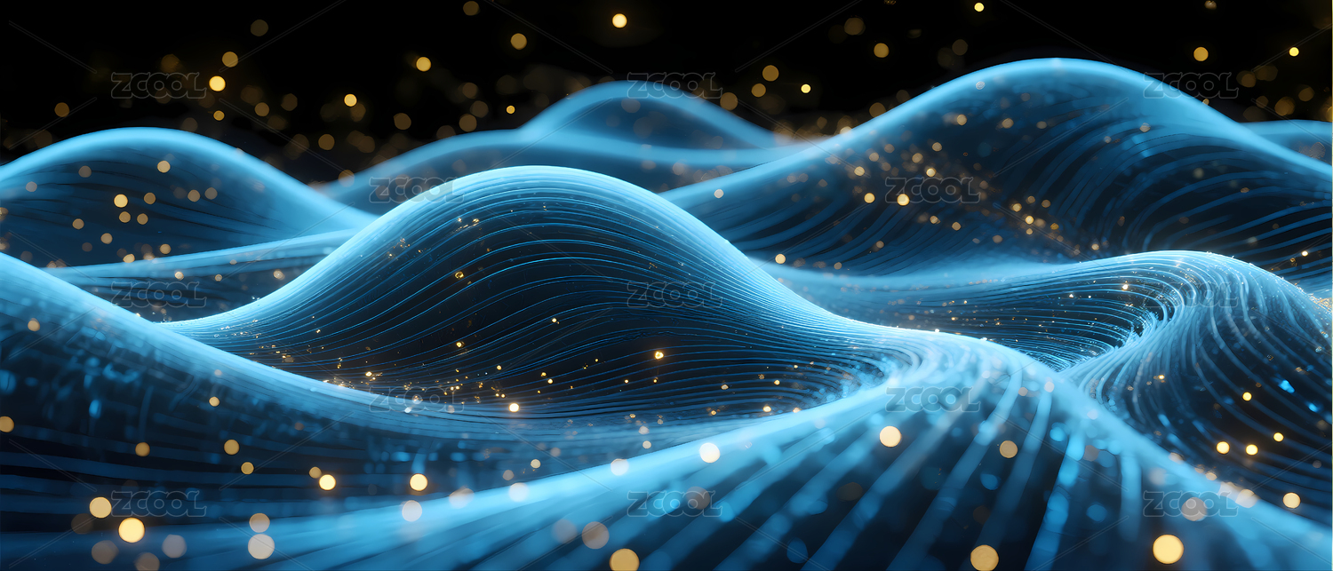 抽象科技背景波浪波纹曲线未来大数据流3D