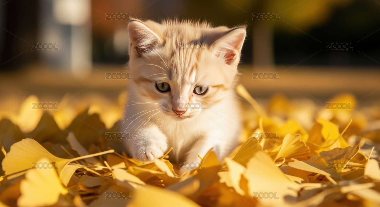 猫,懒猫,银杏,树叶,卡通,漫画,插画,艺术设计,广告设计,素材