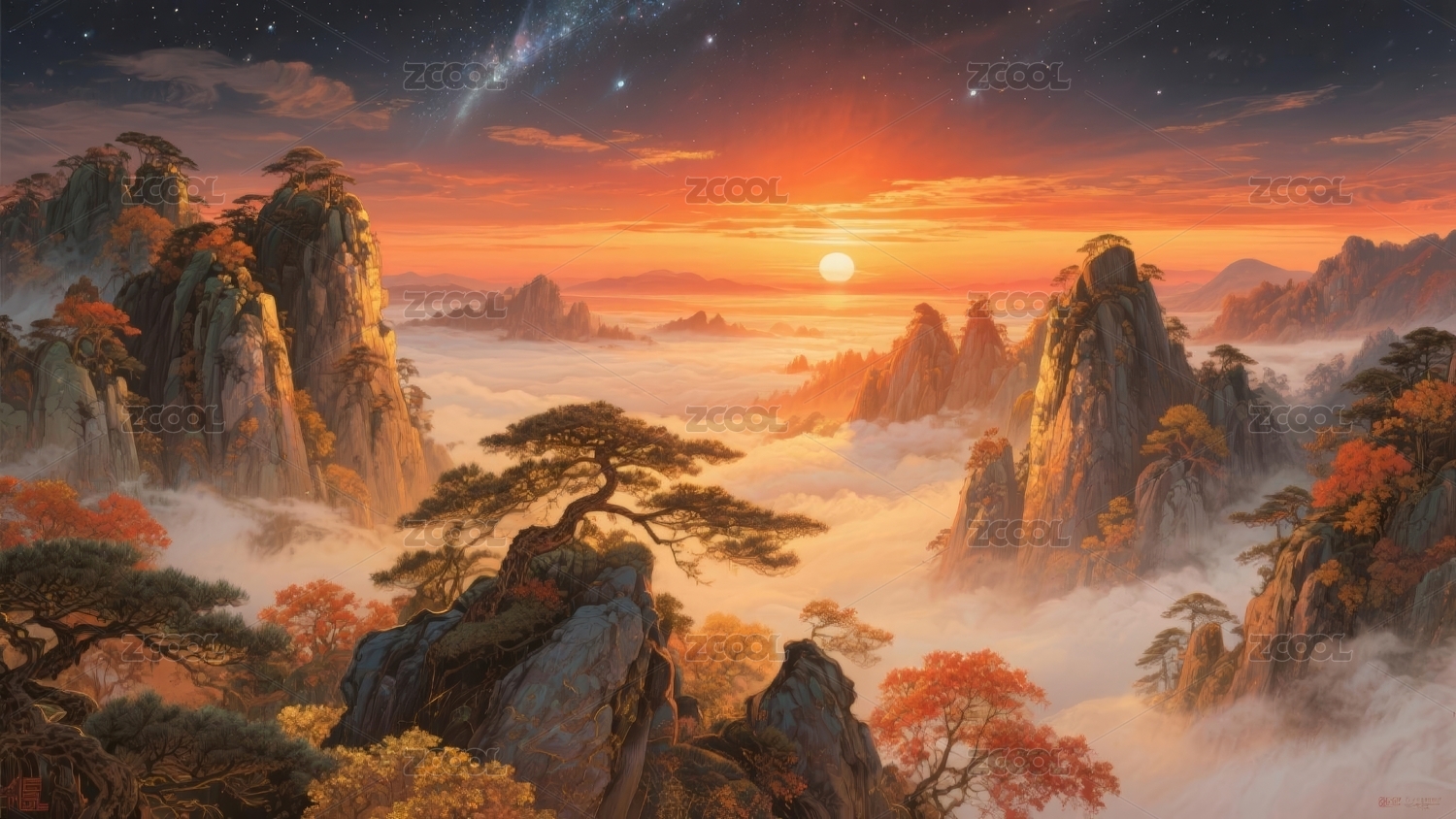 梦幻山峦日出图
