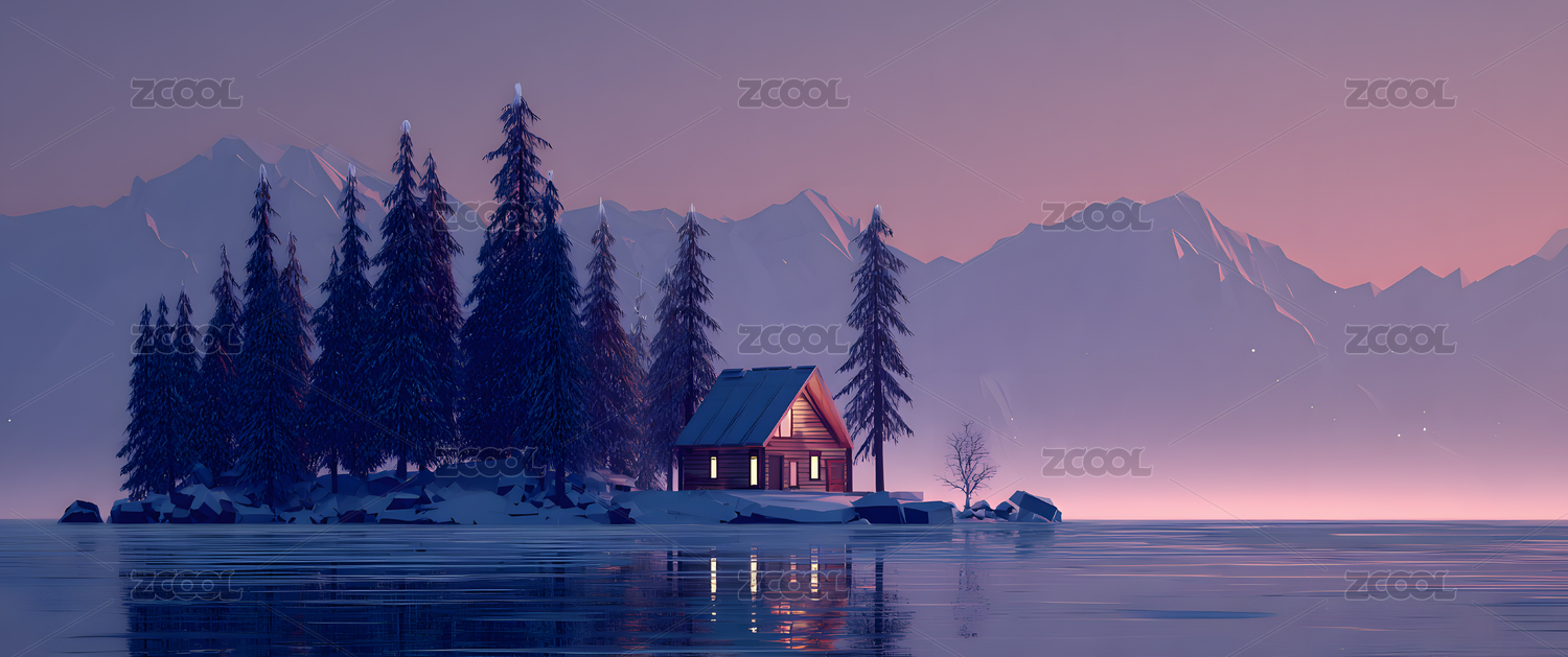 静谧雪景下的湖中小屋